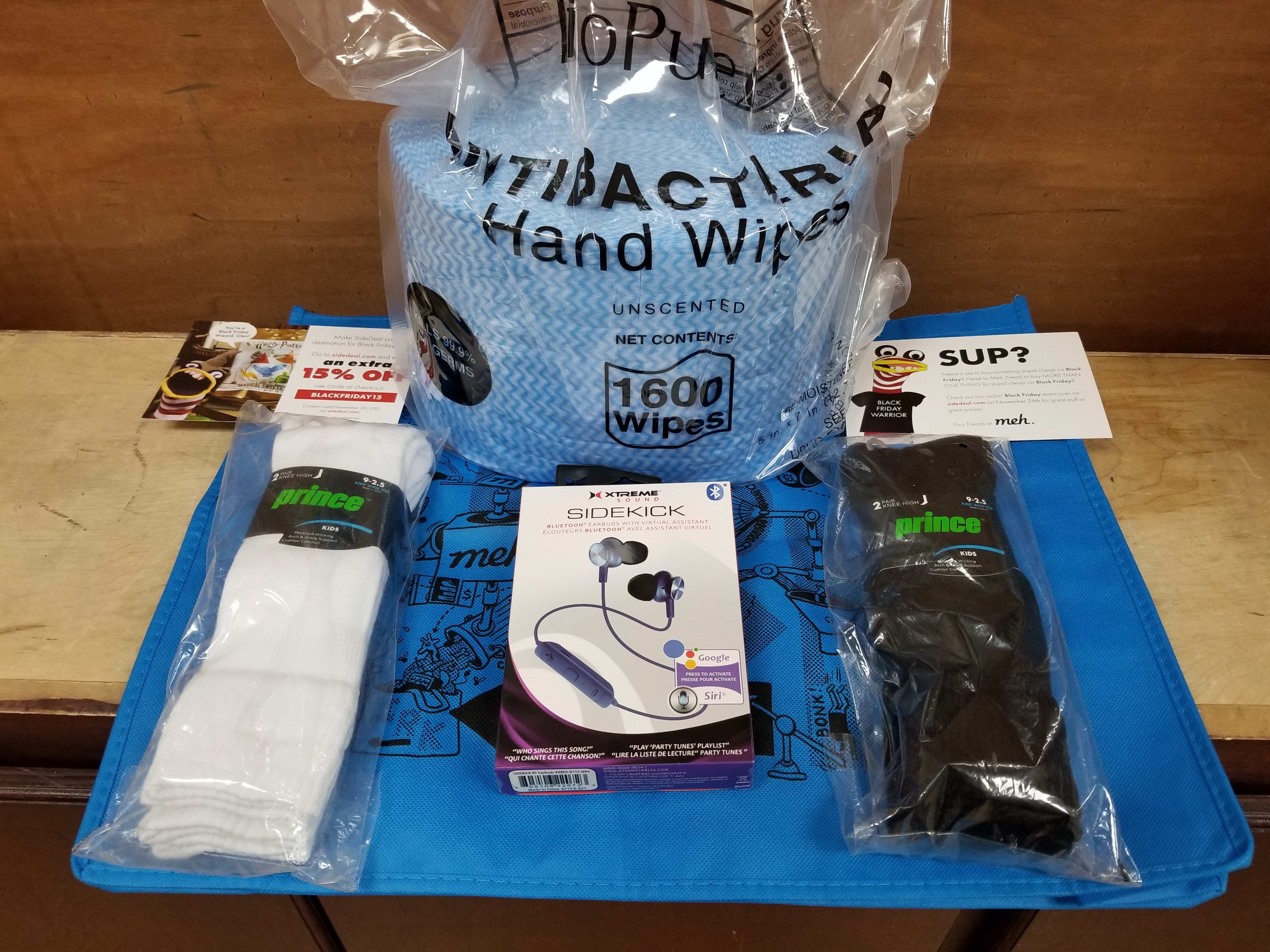 Also got 2 packs of kids socks, bluetooth headphones, and a blue IRK bag.