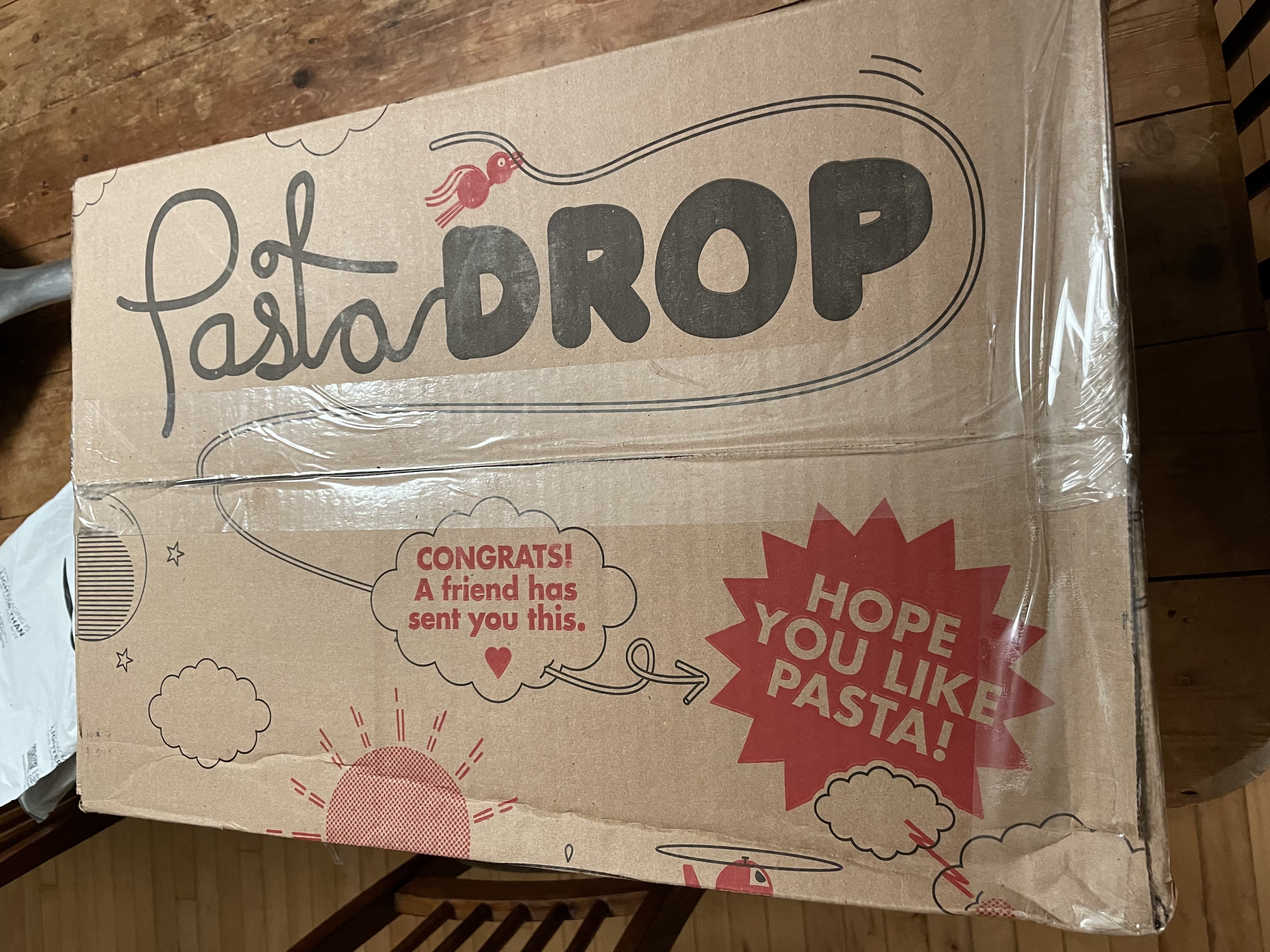 I was alarmed to find a PastaDrop box on my doorstep but was relieved when I picked it up that it weighed just a few pounds. Inside was: