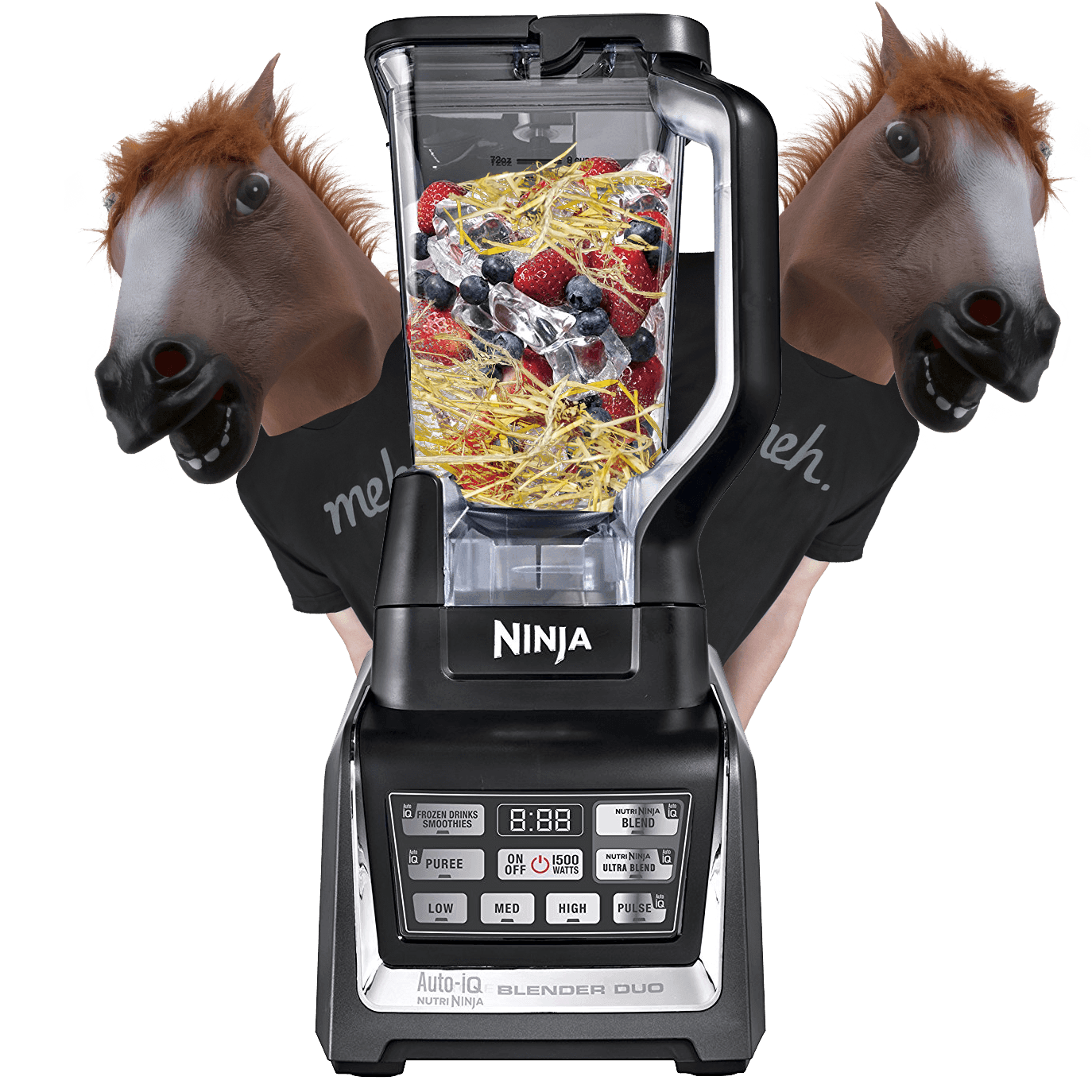 I’m skeptical that these so-called “Ninja” blenders are either made by or made of Ninjas. In fact, it seems pretty obvious they’re not made of ninjas because ninjas typically aren’t made of plastic. They’re made of ninja meat. And these things clearly aren’t made from meat of any kind. They seem to be made of plastic. As for the blenders being made by ninjas, that’s pretty far-fetched as well. I mean, do you think a ninja is going to spend years and years training to be a ninja, then throw all that specialized training away to stand in a factory making blenders? It strains credulity to think that even a single ninja would do that. But a whole factory full of ninjas? That’s utterly absurd! This leads me to a most disturbing conclusion: these blenders aren’t made from ninjas and they’re not made by ninjas because… they’re made for blending ninjas. Disgusting! After all, when you blend ninjas, not only do you ruin their mouthfeel entirely, you risk heating the ninjas, potentially destroying many of the antioxidants they contain which is the whole reason most people make ninjas part of their diet in the first place. If you really insist on getting all the benefits of ninja in drinkable form, at least use a slow-speed masticating ninja juicer. Although even with that option, you’ll be leaving all that nice ninja pulp behind which is really a waste.