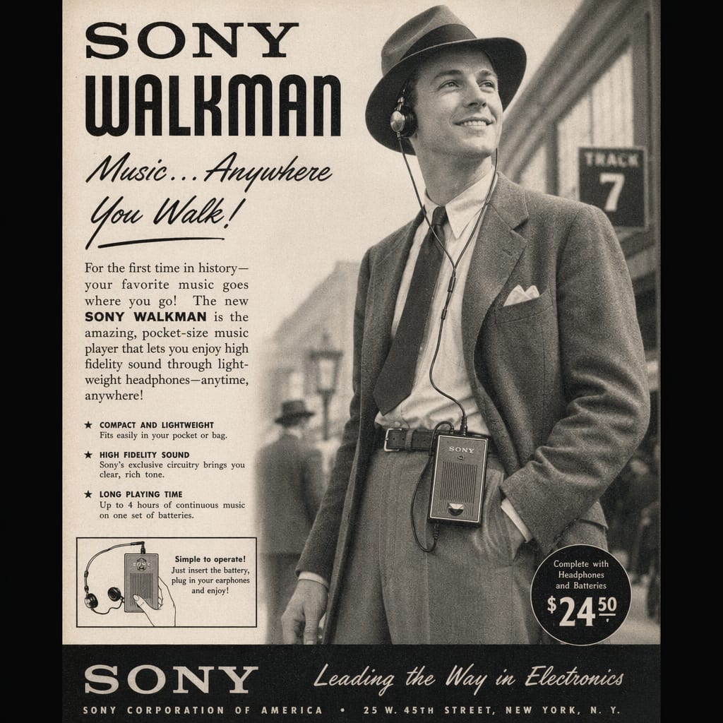@zippyus Here’s the image you requested for “1940 sony walkman print ad”