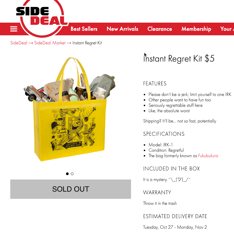 Now that they are sold out, I can let you in on the secret. There’s a second link in the text posted by Dave. That links to an IRK that can be bought by VMP members only. This was a test to see if people read all the text and click on all the links. Link goes to a Sidedeal IRK.