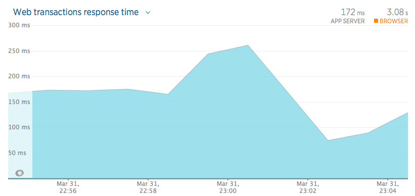 We launched our Fukobukuro 2: The Unluckier Bag for $5 deal right at 12:00:00.000am ET. For the first 550 milliseconds the site performed as expected and let the first 164 customers click the buy button. After 12:00:00.550am ET we noticed an immediate drop to zero pageviews on our checkout page. It took another 3 minutes and 30 seconds before another order was placed. Even after that point orders were barely trickling in... not even quite reaching a 1 order/second pace.