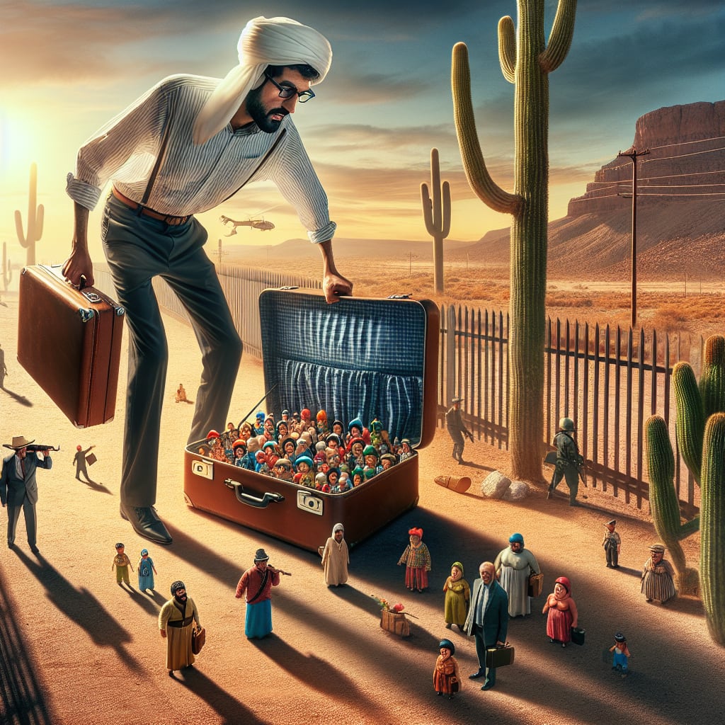 /showme Gulliver smuggling Lilliputians across the Mexican border in a suitcase.