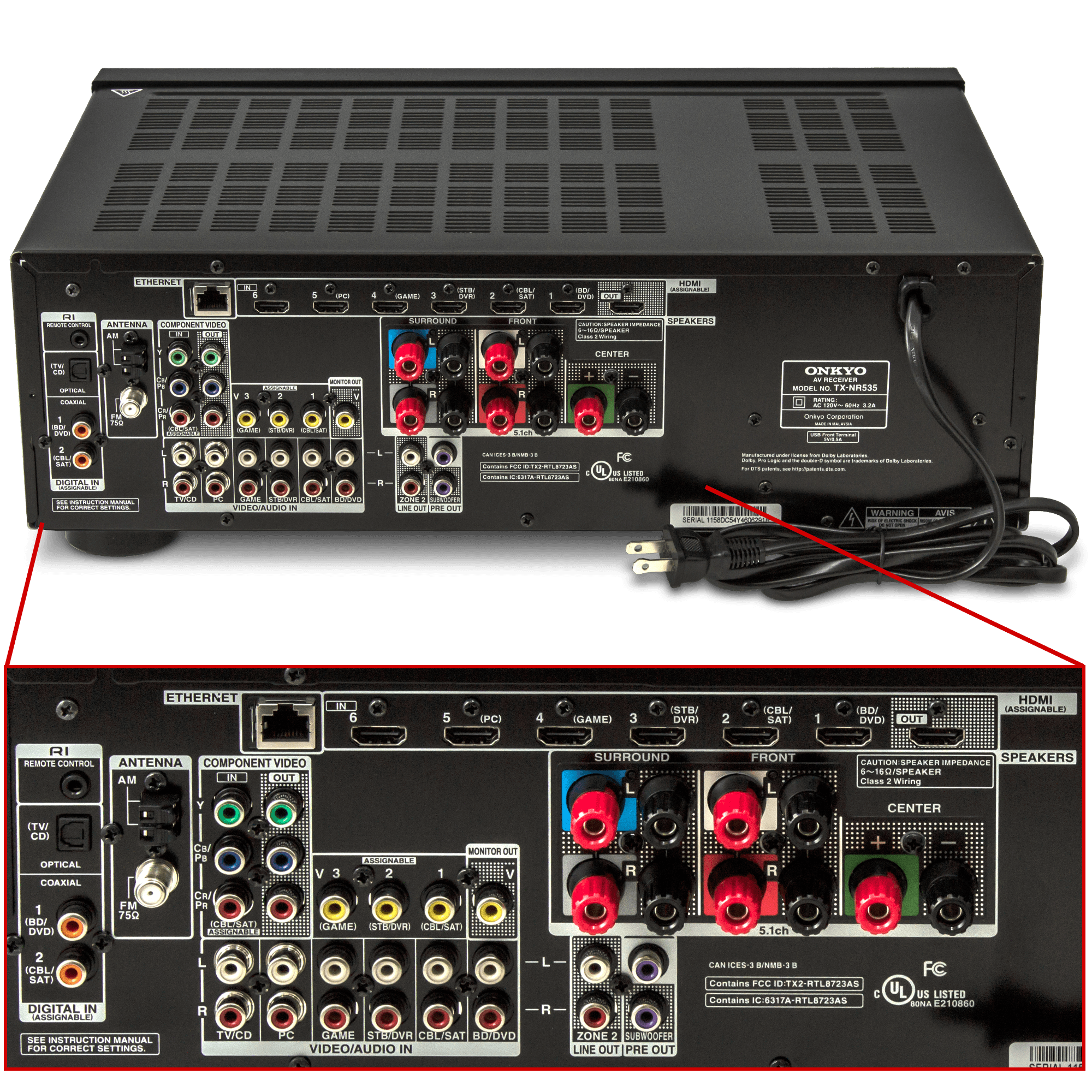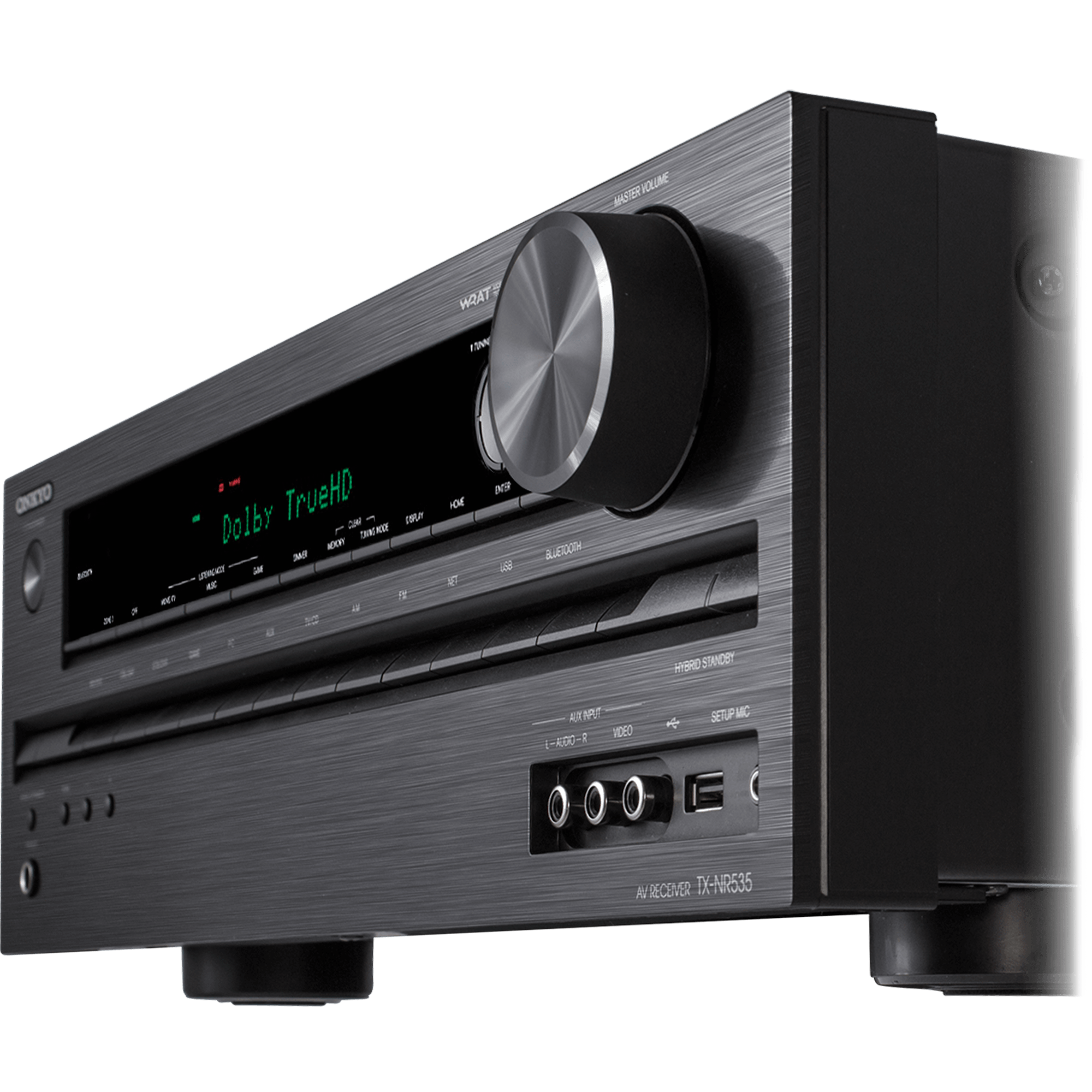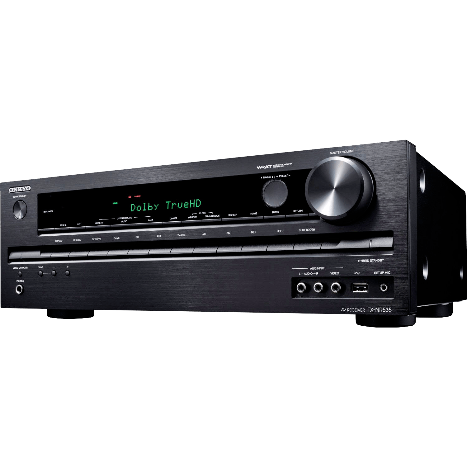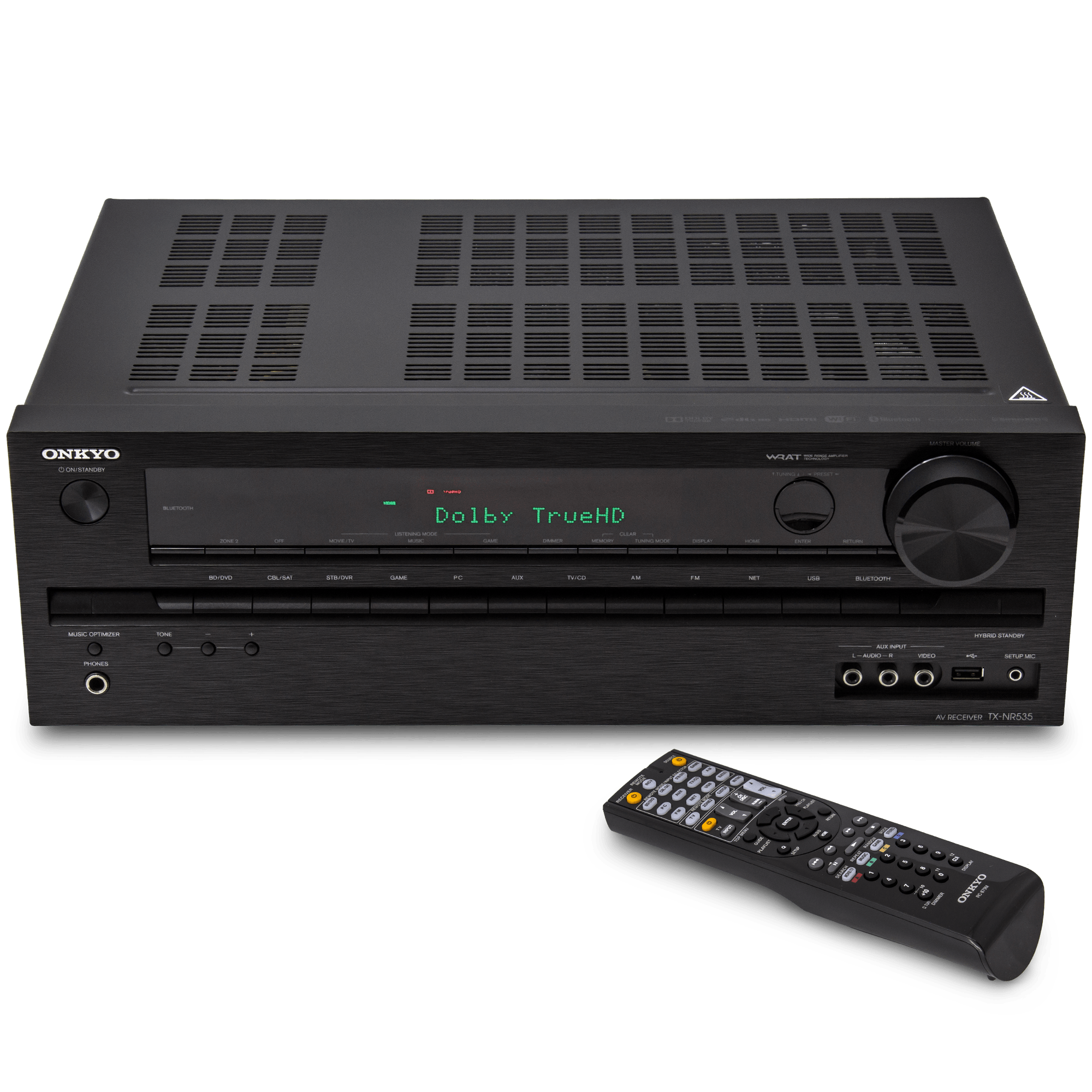 Specs ====- Model: TX-NR535Amplifier:- Number of Channels: 5.2- Power Watts/Ch (6 Ohms 1kHz, 2 Channels Driven, FTC): 115, 0.9% THD- Power Watts/Ch (8 Ohms 20-20kHz, 2 Channels Driven, FTC): 65, 0.7% THD- All Channels: 115w (1kHz, 0.9%THD, 6ohms, 1ch driven) | 65w (20-20kHz, 0.7%, 8ohms, 2ch driven)- Dynamic Power: 160 W (3 ohms, Front) | 125 W (4 Ohms, Front) | 85 W (8 Ohms, Front)- THD+N (Total Harmonic Distortion + Noise): 0.7% (20 Hz-20 kHz, Half Power)- Damping Factor: 60 (Front, 1 kHz, 8 Ohms)- Input Sensitivity and Impedance: 200 mV/47 k-ohms (Line)- Rated RCA Output Level and Impedance: 200 mV/2.2 k-ohms (Line Out)- Maximum RCA Output Level and Impedance: 2.0 V/2.2 k-ohms (Line Out)- Frequency Response: 5 Hz-100 kHz/+1 dB, -3 dB (Direct Mode)- Tone Control: 10 dB, 20 Hz (Bass) | 10 dB, 20 kHz (Treble)- Signal-to-Noise Ratio: 100 dB (Line, IHF-A)- Speaker Impedance: 6 ohmsProcessing:- Phase-matching bass boost- 192K/24 bit DACs: (Burr-Brown)- DTS Decoder: DTS-HD- Dolby Decoder: True HD, DD Plus- AccuEQ room calibration: Mic includedConnectivity:- 1x Component Video In- 6x HDMI In- 1x HDMI Out- Digital audio in: 1x OPT, 2x COAX- Composite: 4x In, 4x Out- 4K Passthrough- Wifi Certified- Pandora, Spotify, Sirius/XM, Slacker, Aupeo!, TuneIn- HDMI support for DVD-Audio, SACD, Multichannel PCM- InstaPrevue Input Source Prevue- Zone 2 Line Out: Fixed- Airplay: Via optional DS-A5- USB input in front- Built-in Bluetooth- HDMI 2.0 4K/60 Hz - Capable HDMI Terminals- Zone 2 Digital to Analog Audio Conversion: NET, USB- Streaming audio from USB memory, DLNA, Home Media- Streaming audio formats supported: Apple Lossless, DSD 2.8/5.6 MHz, Dolby TrueHD, FLAC 192/24, LPCM, Ogg Vorbis, WAV, WMA- Supports Onkyo remote app on Android and AppleGeneral:- Power Supply: AC 120 V ~60 Hz- Power Consumption: 3.2 A- No-Sound Power Consumption: 55 W- Standby Power Consumption: 0.1W- Dimensions: 17.125 x 5.875 x 12.937"- Weight: 16.8 lbs (7.6 kg)- Manufacturer features and specs- Basic Manual (PDF)- Advanced Manual (PDF)- Online Advanced ManualCondition: NewWarranty: 2 Year OnkyoEstimated Delivery: 6/22 - 6/24Shipping: $5 or free with **VMP**What’s in the Box?====1x Onkyo TX-NR535 receiver1x Wireless remote control (RC-879M)2x AA batteries1x Setup microphone1x AM loop antenna1x FM wire antenna1x Basic Manual1x Quick Start Guide (En/Fr/Sp)1x Sheet of color label stickersPictures ====Front view3/4 viewBack detail viewUpper viewRemotePrice Comparison====$499 List, $299.95 at AmazonFind a relevant price comparison? Please share it in a comment in this thread