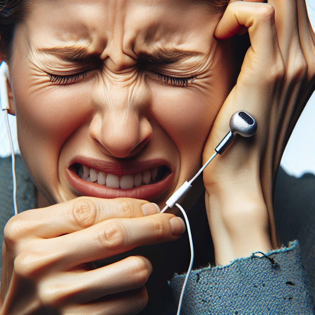 /showme an upset lady ripping her ears off because the earbuds she was wearing were too painful