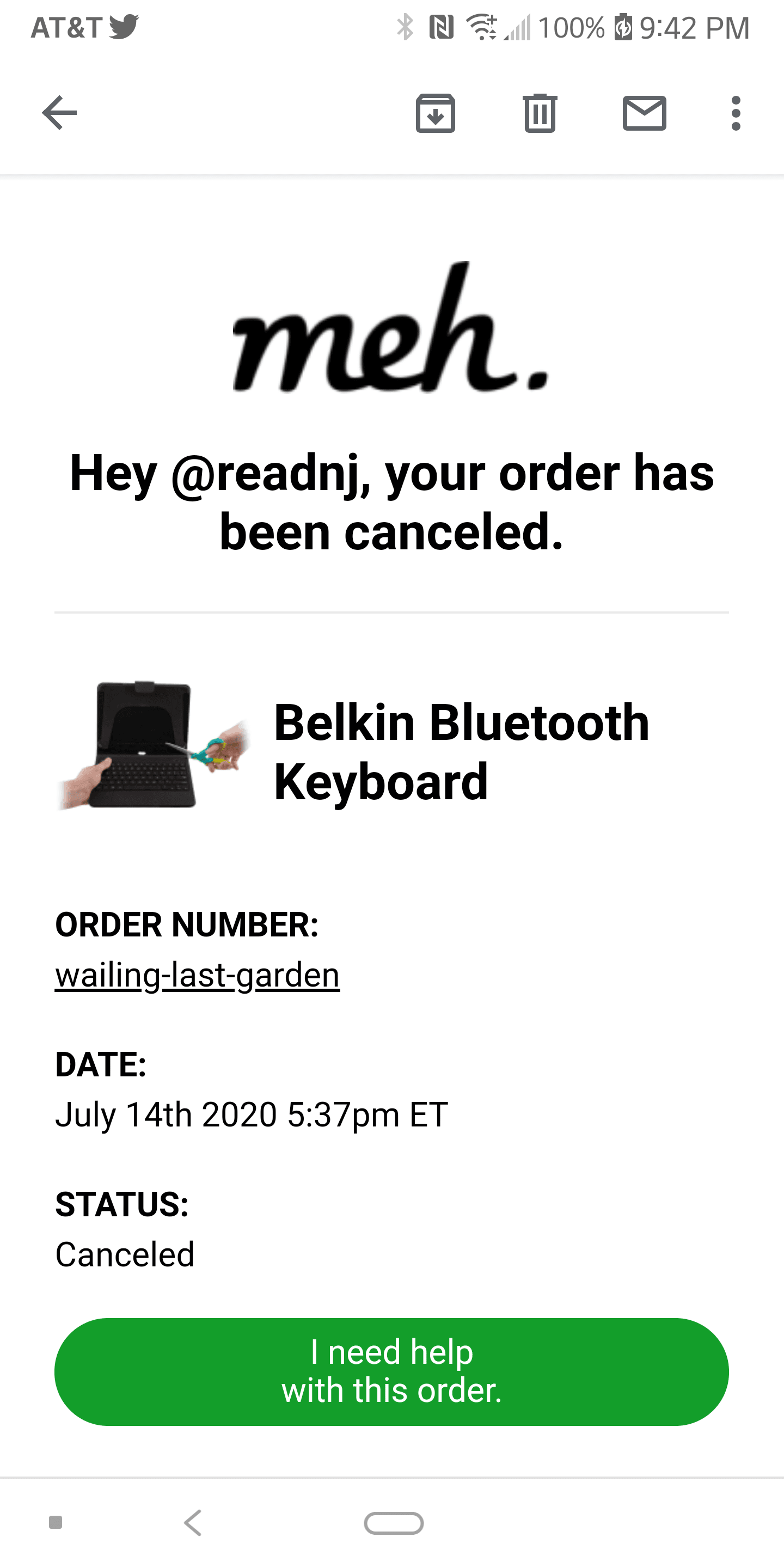 I also had a item cancelled…worst part was that it was a meh-a-thon item and there were only 2 sold. Really wanted it