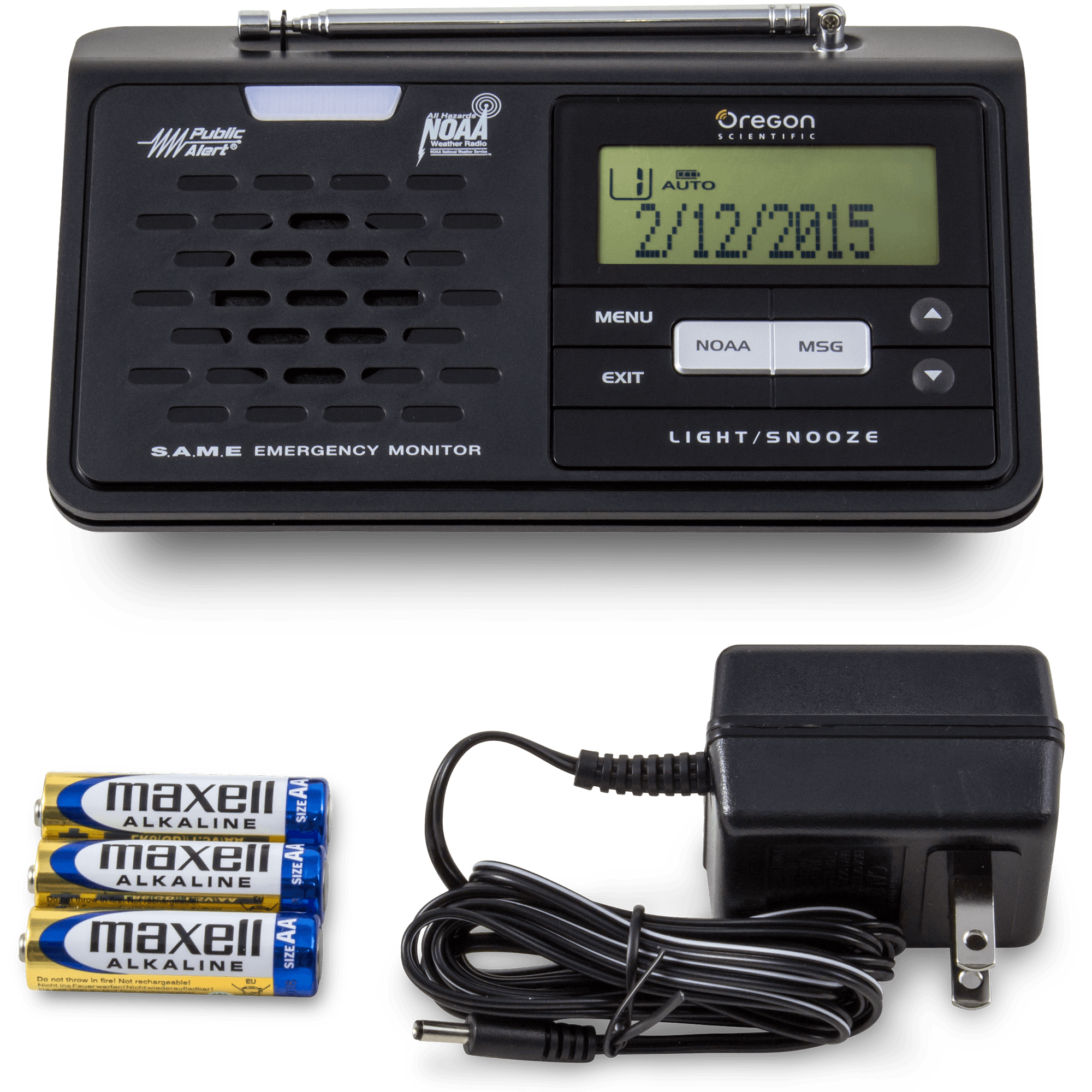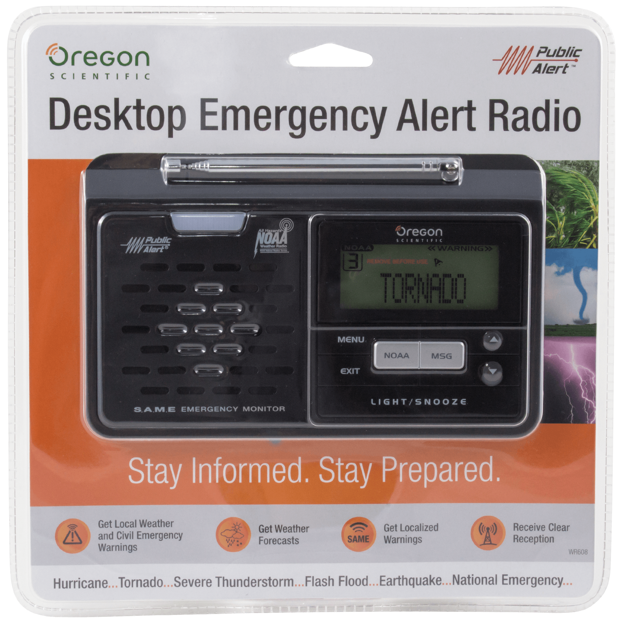 Specs ====- Model: WR608- 24-hour broadcasts of public alert emergencies- Can receive broadcasts for up to nine local areas- Three levels of messages: advisory, watch, warning- Built-in antenna- Automatically sets channel with clearest reception- Home and Travel use modes- External speaker and antenna ports- Backlit LCD display- Power: 120VAC 60Hz 4.5WCondition: New Warranty: 1 Year Oregon ScientificEstimated Delivery: 2/24 - 2/26Shipping: $5 or free with VMP What’s in the Box? ====1x Desktop emergency alert radio1x User manual1x AC adapter3x AA batteriesPictures====The unitEverything includedRetail packagingBacklit screenPrice Check ====$49.99 List, $36.78 at Amazon
