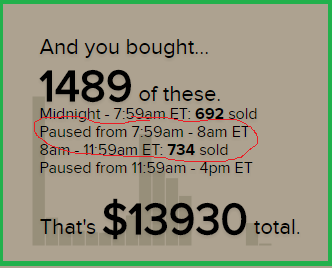 1500 is the guesstimated total available, which means as of this post, there will be 74 (give or take) available when the sales resume for VMPs at 4:00pm EDT.