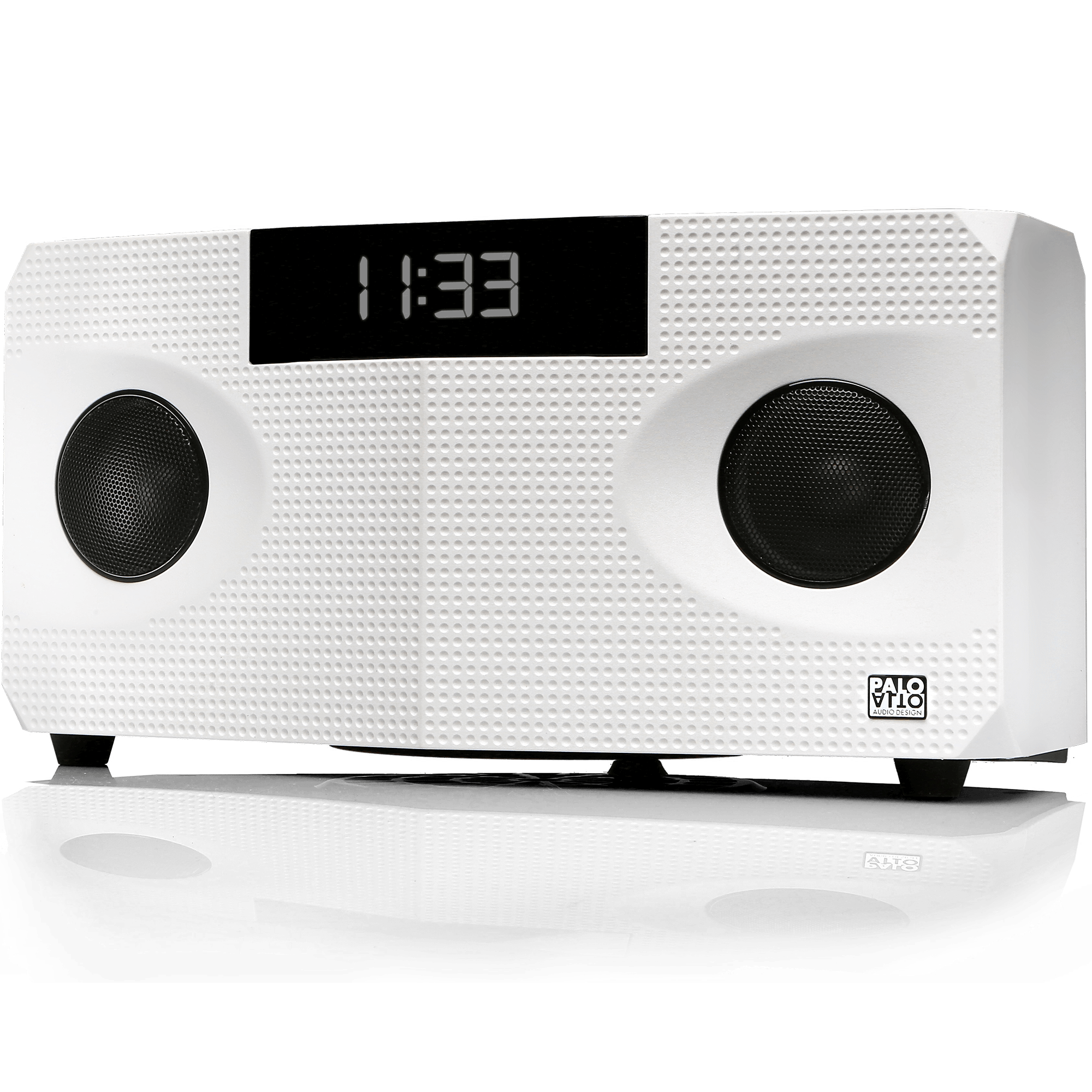 Specs====- Model: SA520APW (Black)- Model: SA520BPW (White) - Dimensions: 13 x 8 x 7 in- Frequency: 192 kHz- Audio Channels: 2.0- Driver type: 3.5" woofer, 2" full-range- 24 bit high-definition signal processing- Features digital signal processing (DSP)- Input: Bluetooth, USBCondition - NewWarranty - 90 day MehShips Via - FedEx SmartPost- $5 Shipping, Free with **VMP**What’s in the Box?====1x Palo Alto Rhombus Speaker Dock1x Remote control with CR2025 battery1x Power cable with outlet adapters1x USB to micro USB cable1x Instruction manualPictures====Black RhombusWhite RhombusEverything in the boxPrice Check====$238.74 at Amazon$206.49 at Overstock$299.99 List