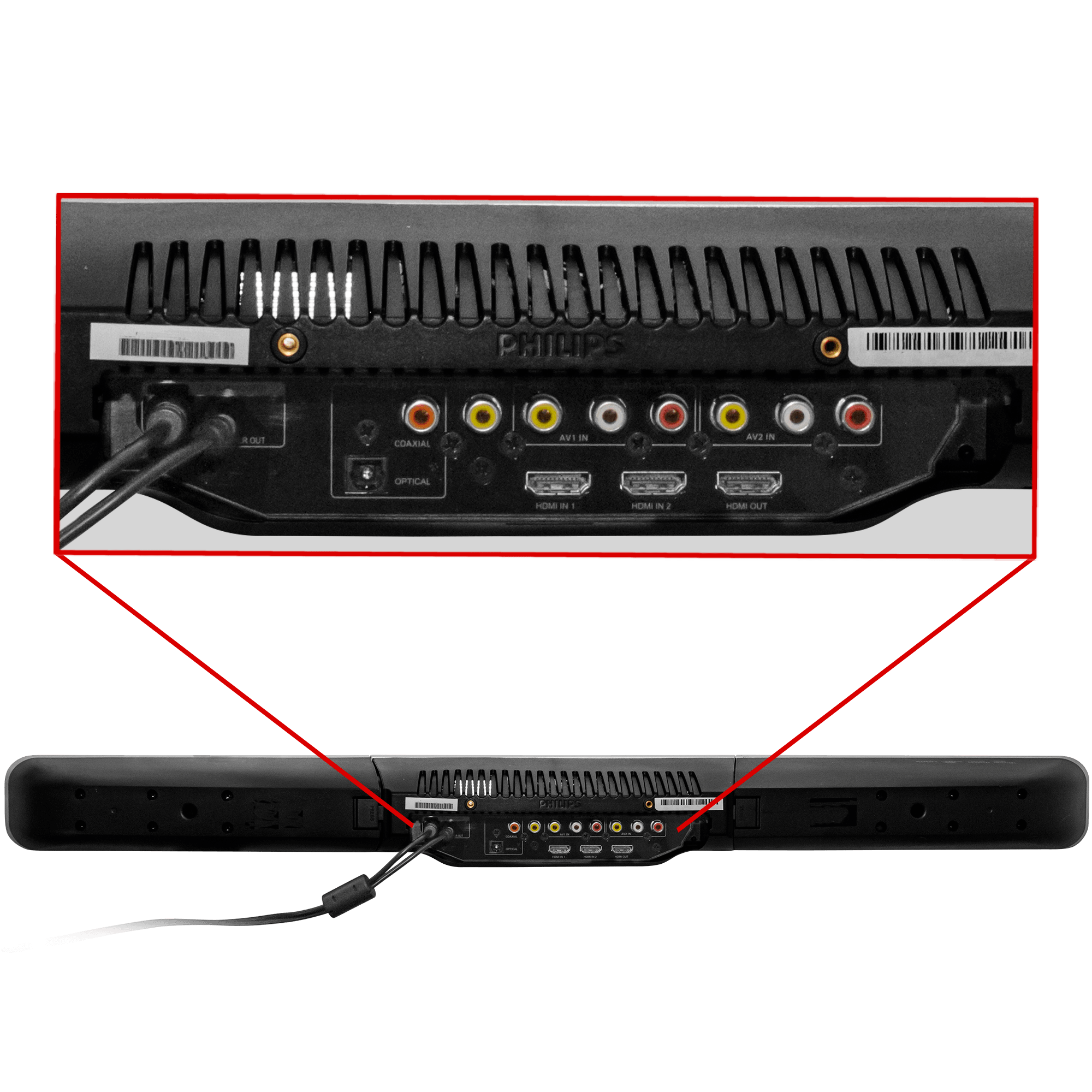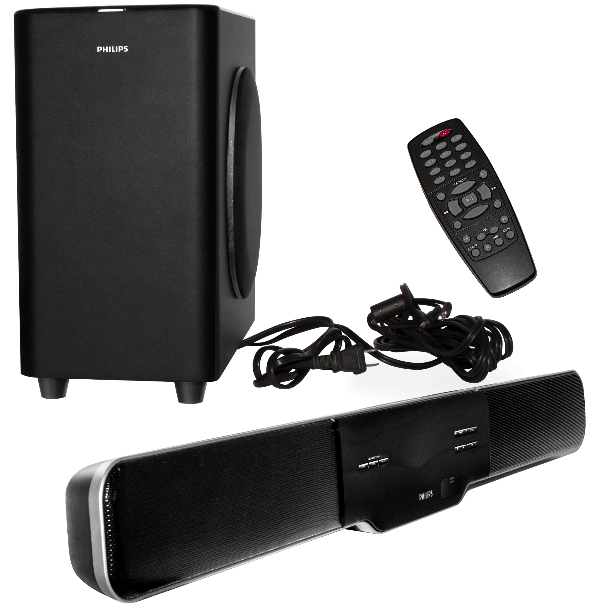 Specs====- Model # HSB2313A/F7- 300W RMS Sound System- Dolby Pro Logic II- Dolby Virtual Speaker 5.1- Integrated HDMI Hub- Subwoofer- Easy Link, MP3 Link, USB Link- Place on wall or tabletop- Speaker impedance: 6ohm- Subwoofer type: Active- Subwoofer driver: 1 x 6.5" long throw woofer- Subwoofer freq range: 35-200Hz - Subwoofer impedance: 3ohmFront / Side connections- Audio L/R in- CVBS in- USB- MP3 Line-inRear Connections- Composite video (CVBS) output- Digital coaxial in 2x- Analog audio Left/Right in 2x- Component Video output- Composite video (CVBS) input- HDMi in 2x- HDMI output- AV 1: Audio L/R in and CVBS in- AV 2: Audio L/R in and CVBS in- Subwoofer conneectManufacturer’s SpecsUser ManualCondition - Manufacturer RefurbishedWarranty - 90 Day PhilipsShips Via - FedEx SmartPost- $5 Shipping, Free with **VMP**What’s in the Box!?====- Soundbar- Subwoofer- Remote- Power AdapterPictures====Soundbar, Sub and RemoteConnectionsPrice Check====$130 at Walmart (new)(220+ reviews)Find a relevant price comparison? Please share it in a reply to this comment