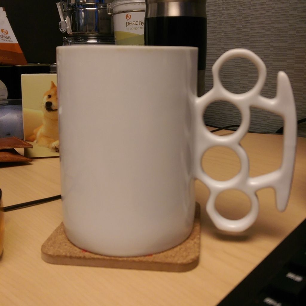 http://www.amazon.com/Fred-Friends-FISTICUP-Ceramic-Knuckleduster/dp/B002MUBWVM