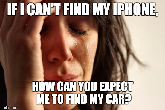 Simple solution… take a picture of the aisle marker closest to where you parked. And, as an Android user, I get really irked (no offense Irk) when a product or app comes out for iPhone users only. If you can’t figure out how to make it compatible for both, don’t bother making it at all. Because when and if said product is available for Android, I’m not buying it. Just because. When do you ever see anything that is for Android only. Never! OK, maybe there are a few products I’m not aware of, but still.