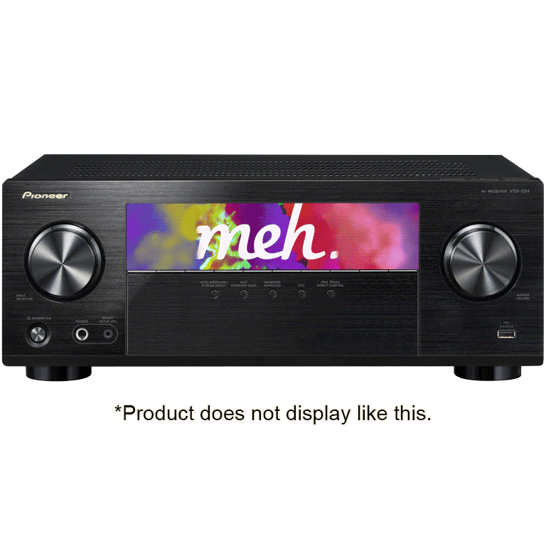 Specs ====- Model: VSX-524-K- Channels: 5.1- Power output (20Hz-20kHz,.08%THD@8ohm 2ch Driven): 80 Watts per channel- Power output (1kHz,1%THD@6ohm 1ch Driven): 140 Watts per channel- 4K Ultra HD pass-through- 3D Ready- HDMI Inputs: 4- HDMI Output: 1- Composite A/V Input: 2- USB input: 1, front- Analog audio input: 3 (1 assignable)- Digital audio inputs: 2- Pre-amp output: .1 ch (SW)- Hedphone output: yes- Dimensions: 17.13 x 6.61 x 13.07- Manufacturer’s specs- Manufacturer’s page- User manual- Quick start guideCondition: NewWarranty:1 Year PioneerEstimated Delivery: 9/24 - 9/26Shipping: $5 or free with **VMP**What’s in the Box?====1x AV Receiver1x Remote control2x AAA batteries1x Setup mic1x FM wire antenna1x AM Loop antennaPictures====FrontBackRemoteMeeeehPrice Comparison====$280 List, $229.98 at AmazonFind a relevant price comparison? Please share it in a comment in this thread