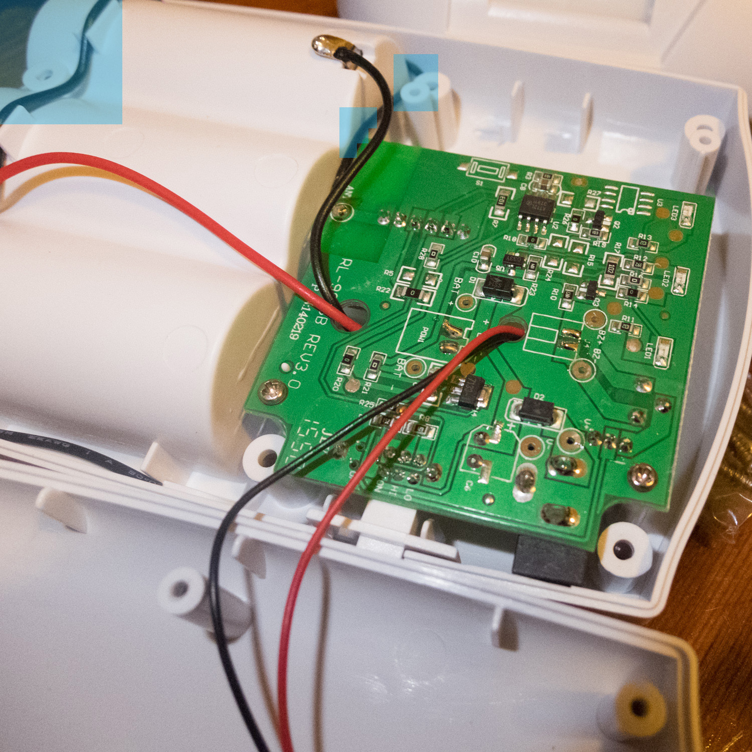 Highlighted in blue is the wire that serves as the antenna which is somehow the most interesting thing so far. This board is revision 3, apparently, that’s fun, right? Alright, we have two screws to make something exciting happen here, let’s roll a d20 for luck…