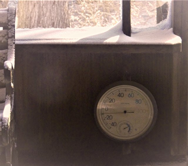 My screened back porch this morning, as taken through the kitchen door, because I’m not opening the door. There’s another storm coming through (the Ozarks) tonight with more snow. I just keep looking at the forecast that says a week from now it will be close to 60 degrees.