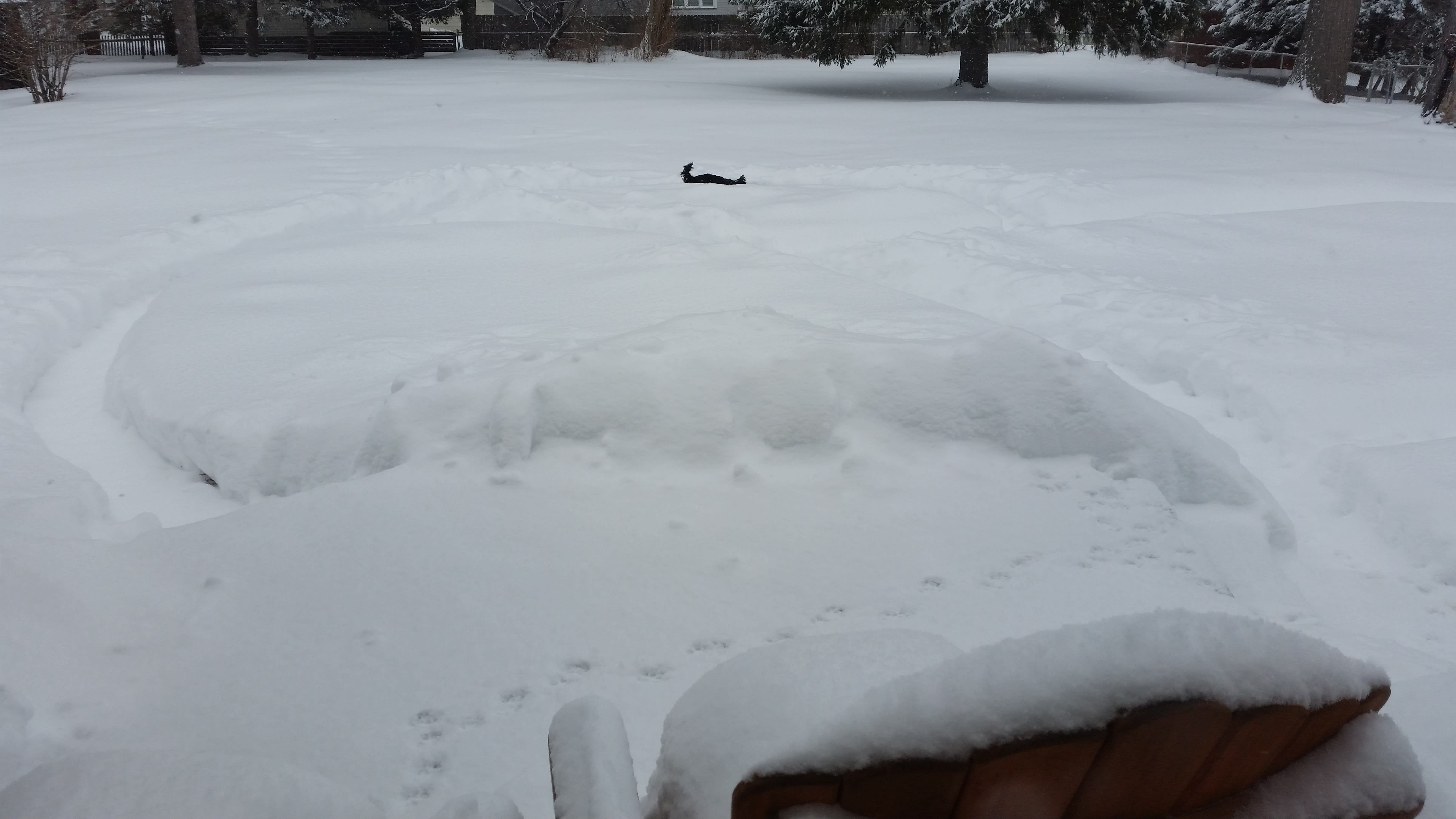 @tinamarie1974 He LOVES it. If i didn’t dig the paths for him, he would wade out in it up to (or over) his shoulders (he does anyway, often to pee). He does his version of snow angels, basically rolling around on his back, so when he comes in he’s covered all over and sometimes has giant snowballs stuck all in his hair.