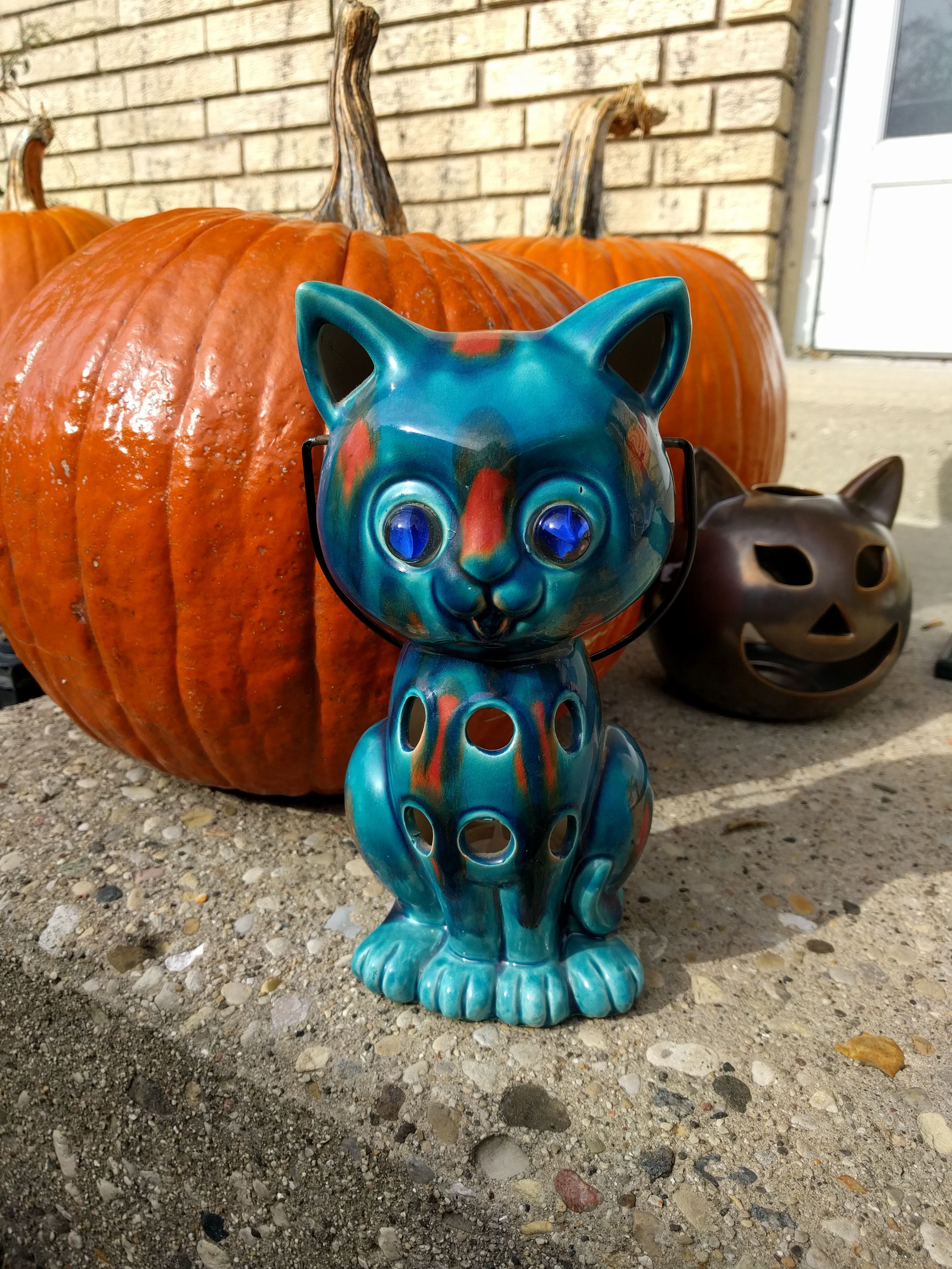 I found this great ceramic cat lantern last month. It has a wonky eye you can only see when it’s lit. Just like a real cat!