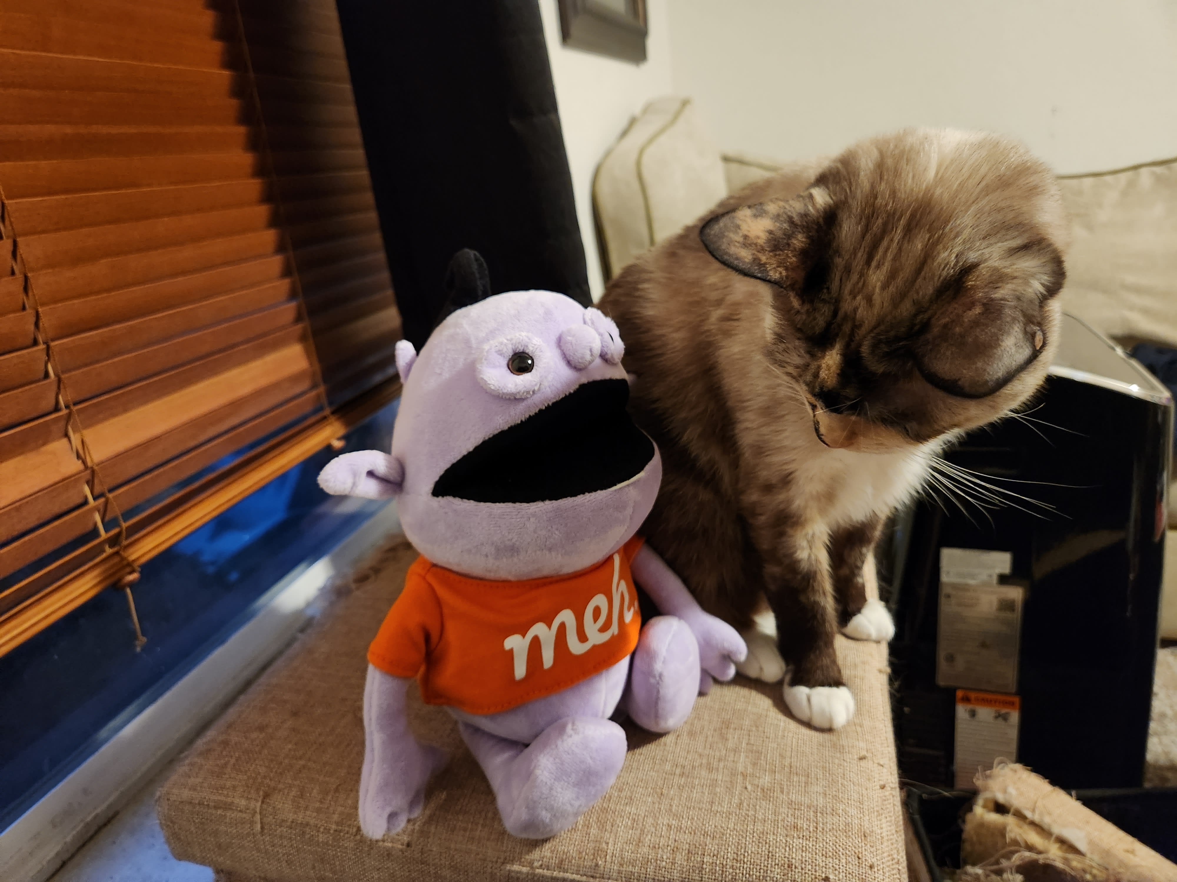 @Kyeh @OnionSoup She has a deep seated grudge against Meh after we got an Instant Regret Kit that was three or four boxes FILLED with underwear. Shes planning something to make IRK an “art piece” to share here. Will photograph it when it is done!