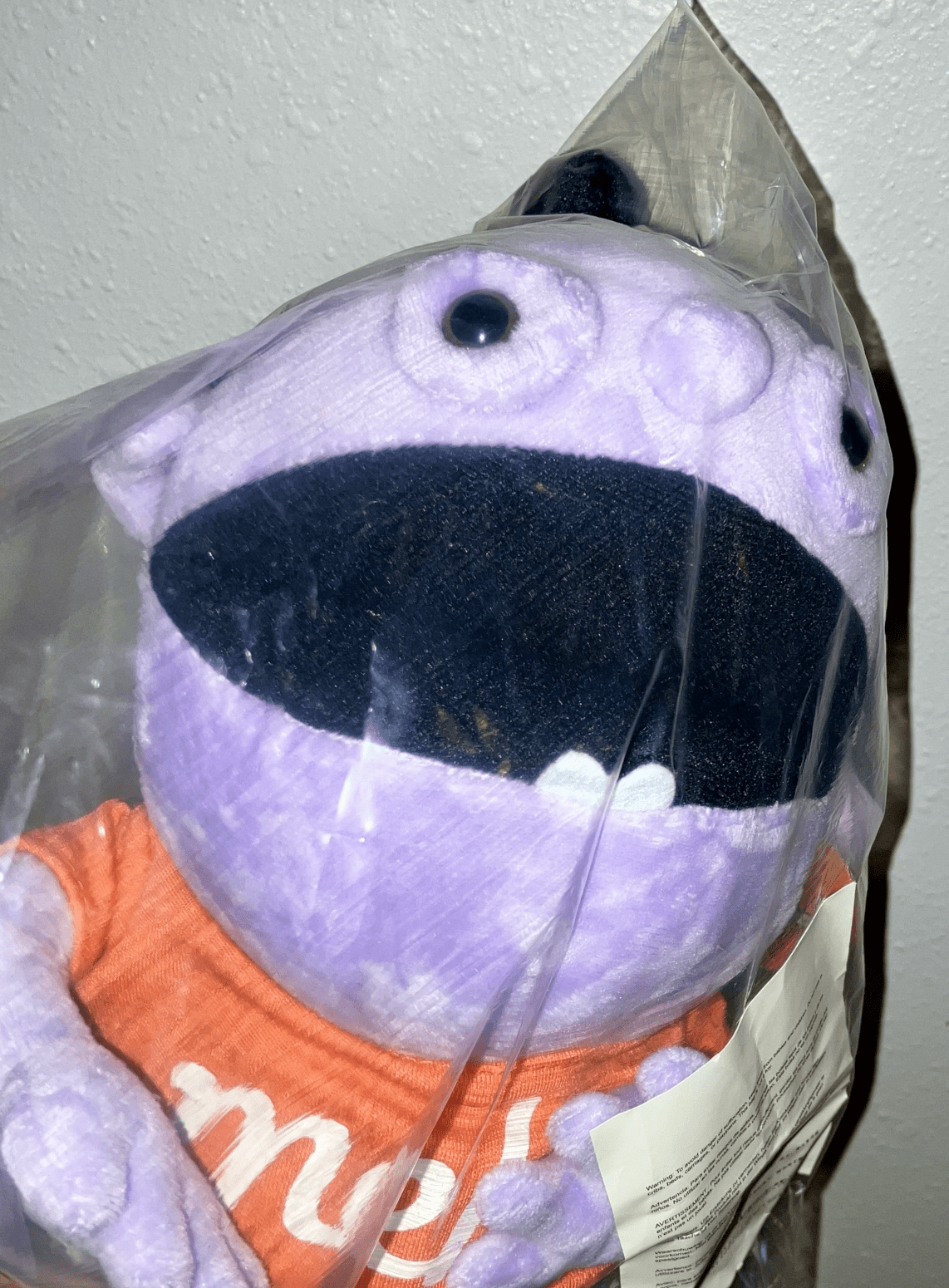 @Lynnerizer@OnionSoup@whomeyesu Mine’s purple-ish. Sort of lavendery. And no lips. I mean, seriously, between the overstuffing and the lack of lips, I can see why he’s stuck in an endless silent scream.