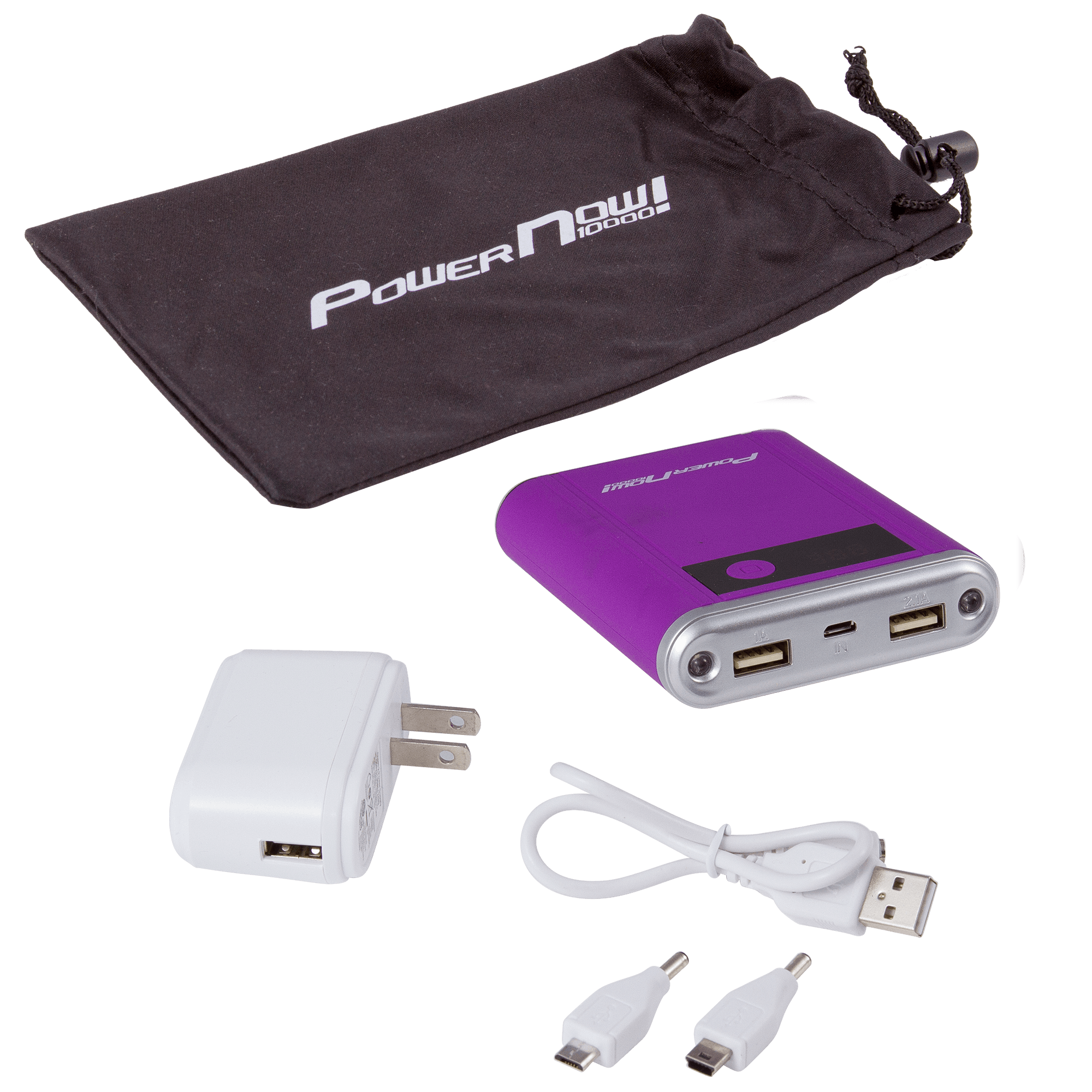 Specs ==== - Battery: 4X 3.7V Li-ion Samsung ICR18650 2600mAh - Can charge two devices at same time - Output 1 - 5V - 1 Amp- Output 2 - 5V - 2.1 Amp- Two ultra-bright LED flashlights with 2 settings - 10000 mAh - Compatibility - iPad, iPod, iPhone 5S, 5C, 5, 4, 3G, Kindle Fire, Samsung Galaxy S2, S3, S4, Sprint Epic 4G Touch, or any other Smartphones, Tablets & USB Devices Condition - New Warranty - 1 Year PowerNow Ships Via - FedEx SmartPost - $5 Shipping, Free with VMP Whats in the box!? ==== - USB charging cable - Mini-USB Charging Connector - Micro-USB Charging Connector - AC power adapter - ETL-Certified USB Wall Charger - 5V/1000mAh - Carrying pouch - Manual Pictures ==== [Purple][2] AccessoriesPrice Check ==== $60 at PortableCharger $40 at HSN (24 Reviews) [1]: