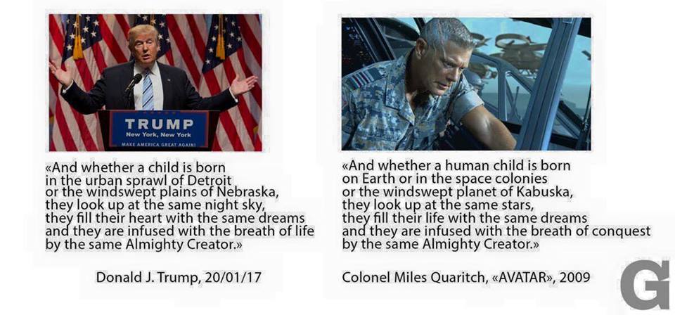 @OldCatLady Fake news is fake even when it is about Trump. Snopes says those are Trumps words, but the other lines cannot be found in the script for Avatar. There are plenty of things not to like about DT, but this is not one.