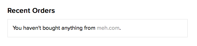 I went ahead and added it to help prevent confusion with customers unable to find their order history across our different sites. If someone bought a shirt from mediocre.com and then stumbled upon their account page on meh.com it's going to show a helpful message like this: