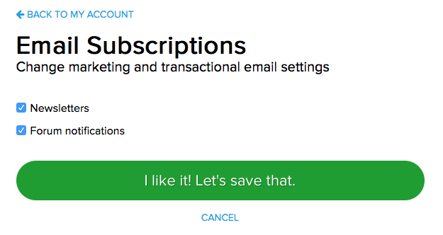 Not much to say here other than you can now opt in and out of our newsletters from this page. You can also turn on and off forum mention emails here.