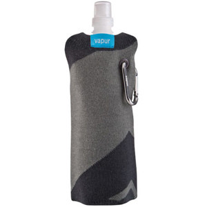 I like the Vapur Classic Classic Collapsibles I bought here and, damnit, I'm trying to be more eco-friendly, but a usable water bottle needs a thermal prophylactic (that's right, a water bottle condom). These handy devices not only protect the frigidity of the bottle's contents, but they keep one's hands dry; this is particularly an issue when dealing with frozen bottles, because they sweat like a motherfucker when they start to thaw (i.e., when you want to hold them so as to consume their contents). Freezeability is something touted on the Vapur--and they seem to work nicely, freezing and then partially thawing relatively quickly, but, yeah, the outside gets super wet. See attached for a generic propho on a regular, earth-killing bottle. Obviously I'm looking for something that fits the Vapur.