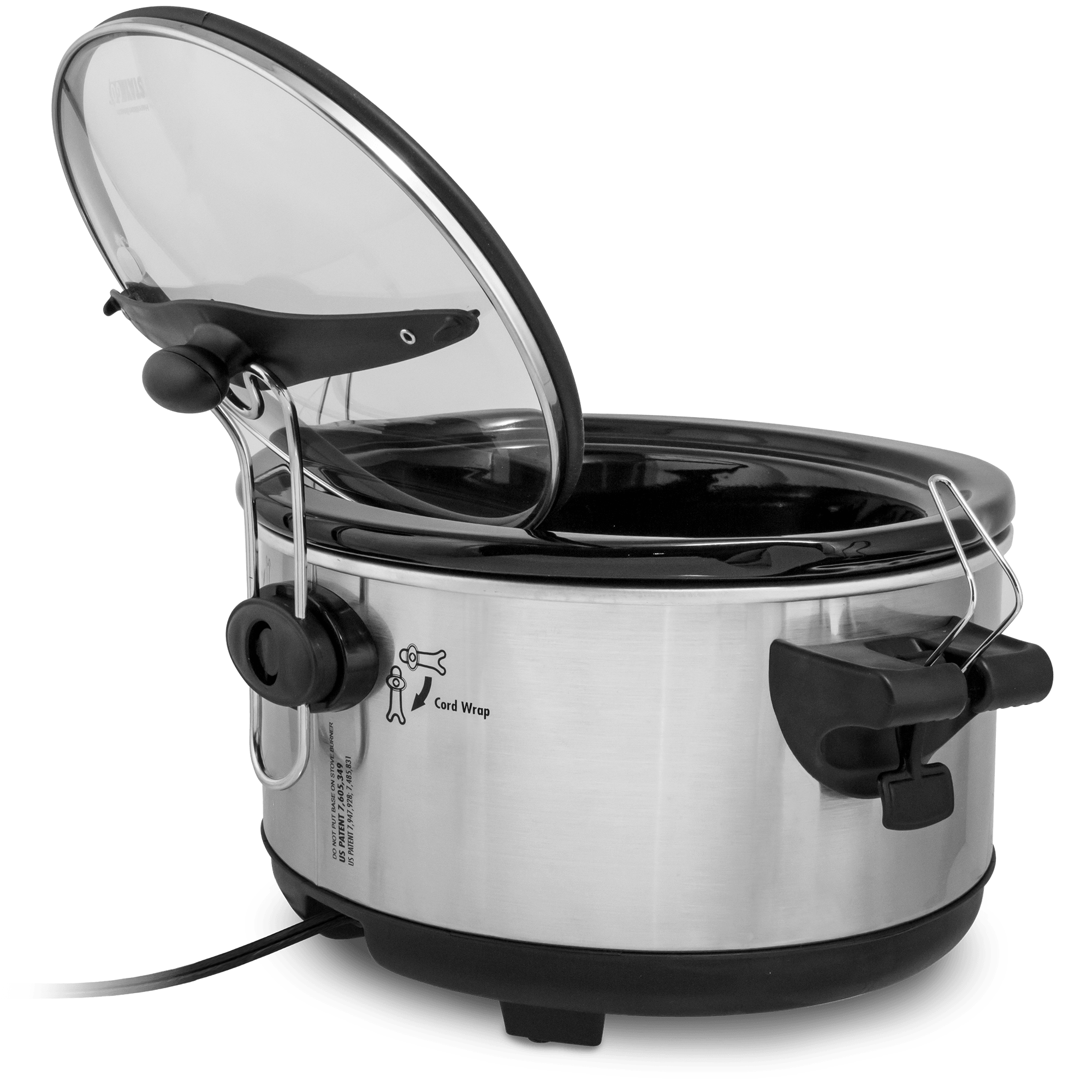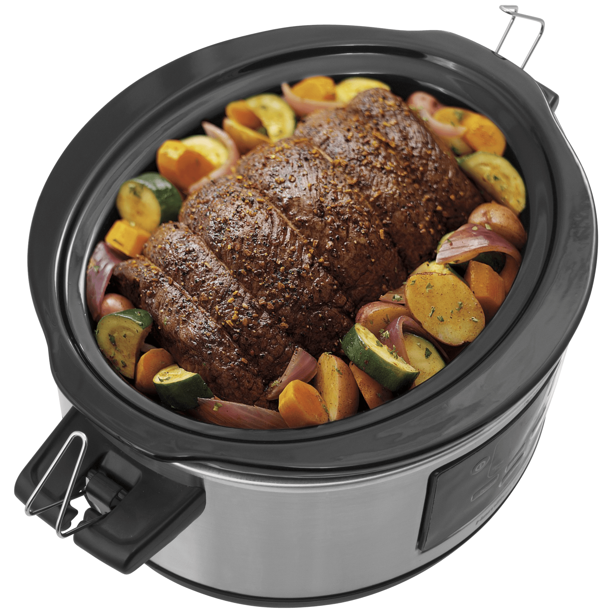6 Qt. Programmable Slow Cooker (refurbished) with bonus 2 cup food warmer. I especially love how it Three cooking methods: program, probe and manual and the rest of the family just raves about how it Warmer is powered. The best feature is how it Power interrupt protection keeps slow cooker on during brief power outages (note: last time we sold a slow cooker with this feature, @Moose thought this was a weird feature to call out as he wrote the specs. Little did he know that his own slow cooker at home was turned off because of a brief power outage, and his dinner was ruined before it even started cooking)!!!
