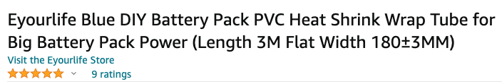 @blaineg Hey, where’d you buy the big shrink tube? I have some work I’m doing on a similar battery pack and that stuff is hard to find.