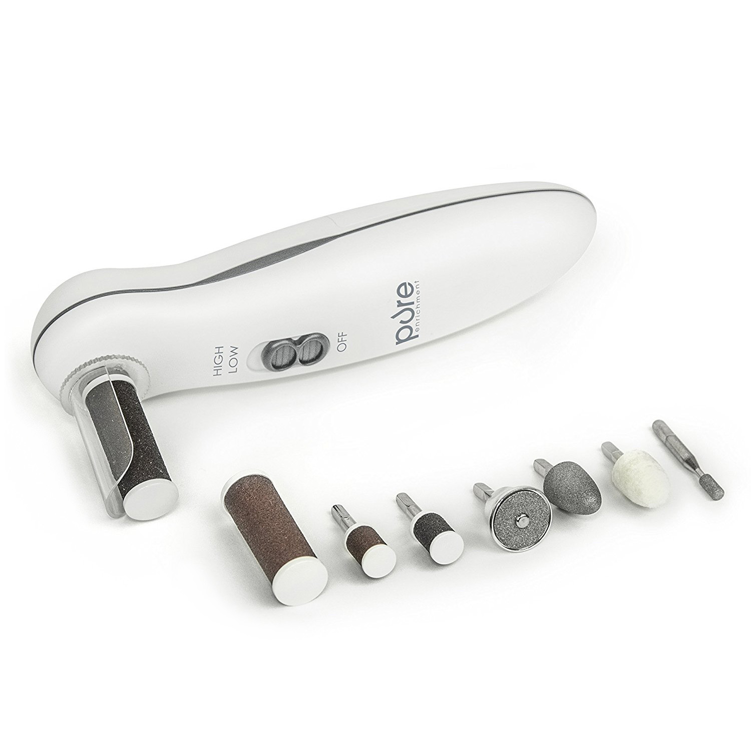 Specs ====- Model: PEPEDLUX- Condition: New- Includes 8 attachments for smoothing corns and calluses, removing excess cuticles, and filing, shaping and buffing nails- Powered by 2 AA batteries (not included) - High and low speed settings to handle delicate and rough areas - Comes with an adjustable protective cap to prevent nail residue from flying- Coarse Callus Remover removes rough, hardened skin from heels and soles- Fine Callus Remover softens rough skin on heels and soles- Coarse Mini Callus Remover removes rough skin in the hard-to-reach areas between your toes- Fine Mini Callus Remover softens skin in the between the toes- Sapphire Shaping Disk shortens and shapes the edge of the nail- Sapphire Smoothing Cone reduces thick toenails and removes corns and calluses- Polishing Felt Cone polishes nail to complete the manicure or pedicure- Cylinder Mini Shaper files and removes hardened skin and corns around the toesWhat’s in the Box? ====1x PurePedi Deluxe Nail Tool 8x AttachmentsPictures====PurePedi and accessoriesFootHandPurePediThere it isBoxFeetPrice Comparison====$49.99 List, $39.99 at AmazonFind a relevant price comparison? Please share it in a comment in this thread