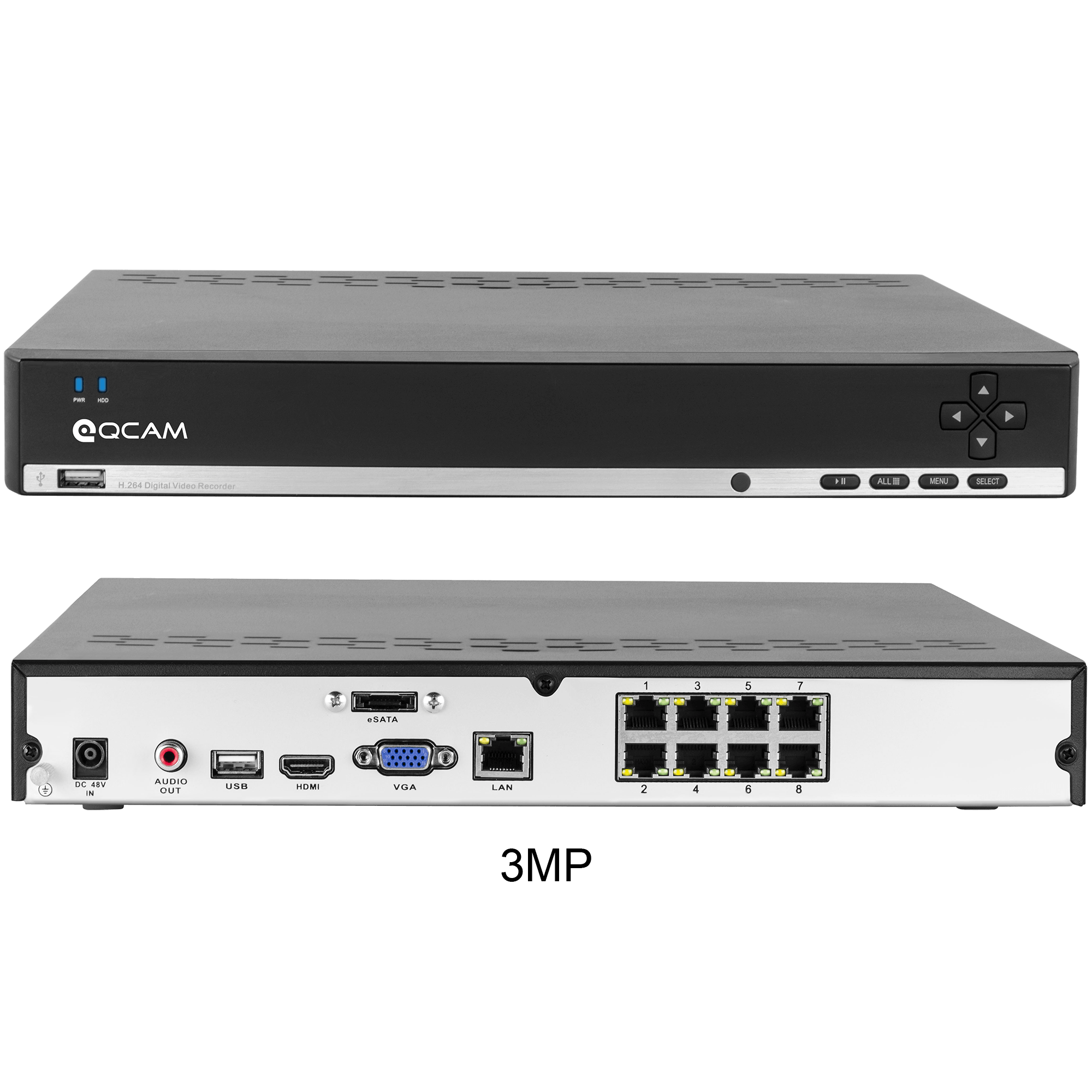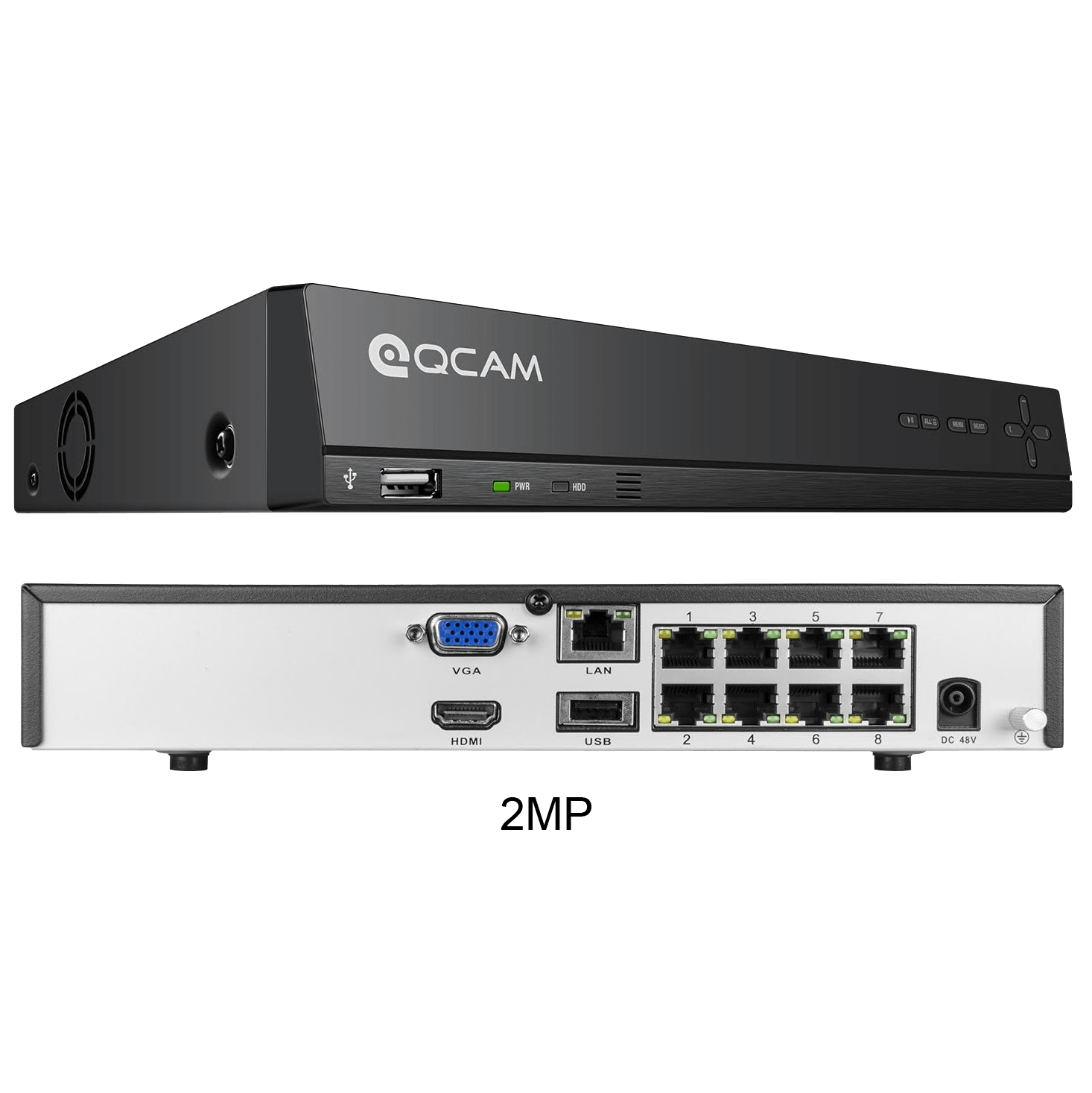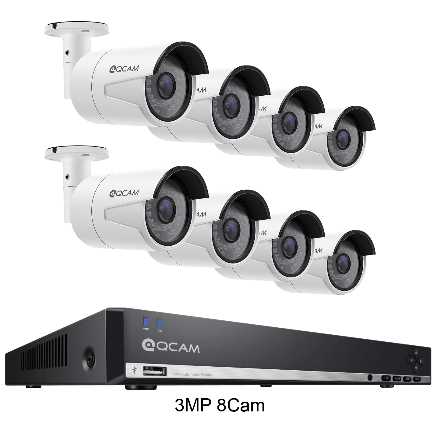Specs ====- Model: AMNV2M8-4B, AMNV3M8-4B, IP2M822E, IP3M952E- Condition: New- 2MP Resolution: 1920 x 1080p(1920tvl) @ 25fps- 3MP Resolution: 2048 x 1536p (2048tvl) @ 25fps- IR-LED Night Vision: 65 feet / 20 meters in total darkness- Weatherproof: IP66- Remote Viewing on iOS and Android (w/ included Qcam Link app)- Remotely Access w/ Standard Browsers- 2MP viewing angle: 90 degrees- 3MP Viewing angle: 70 degrees- Multiple Trigger/Alarm Events: Motion Detection, Video Loss, Recording, Email, and Buzzer- USB backup- NVR Compatible with Amcrest, Foscam, Dahua and all other ONVIF Compatible IP Cameras- Additional specs for 3MP- Additional specs for 2MPWhat’s in the Box? ====1x 8-Channel NVR w/ Pre-Installed 2TB HDD1x 3ft Ethernet Cable1x HDMI Cable1x Power Supply1x Mouse1x Remote1x User Manual + Quick Start Guide4/6/8x Cameras4/6/8x 60ft Ethernet Cables4/6/8x x Installation hardware4/6/8x x “24 hour surveillance” security stickersPictures====2MP Camera3MP CameraHands for scale2MP NVR3MP with 8 cameras3MP with 6 cameras3MP with 4 cameras3MP with cameras everything included3MP NVR2MP with 8 cameras2MP with 6 cameras2MP with 4 camerasIncluded with 2MPPrice Comparison====$699.99 at Amazon for 2MP$569.99 at Amazon for 3MPFind a relevant price comparison? Please share it in a comment in this thread
