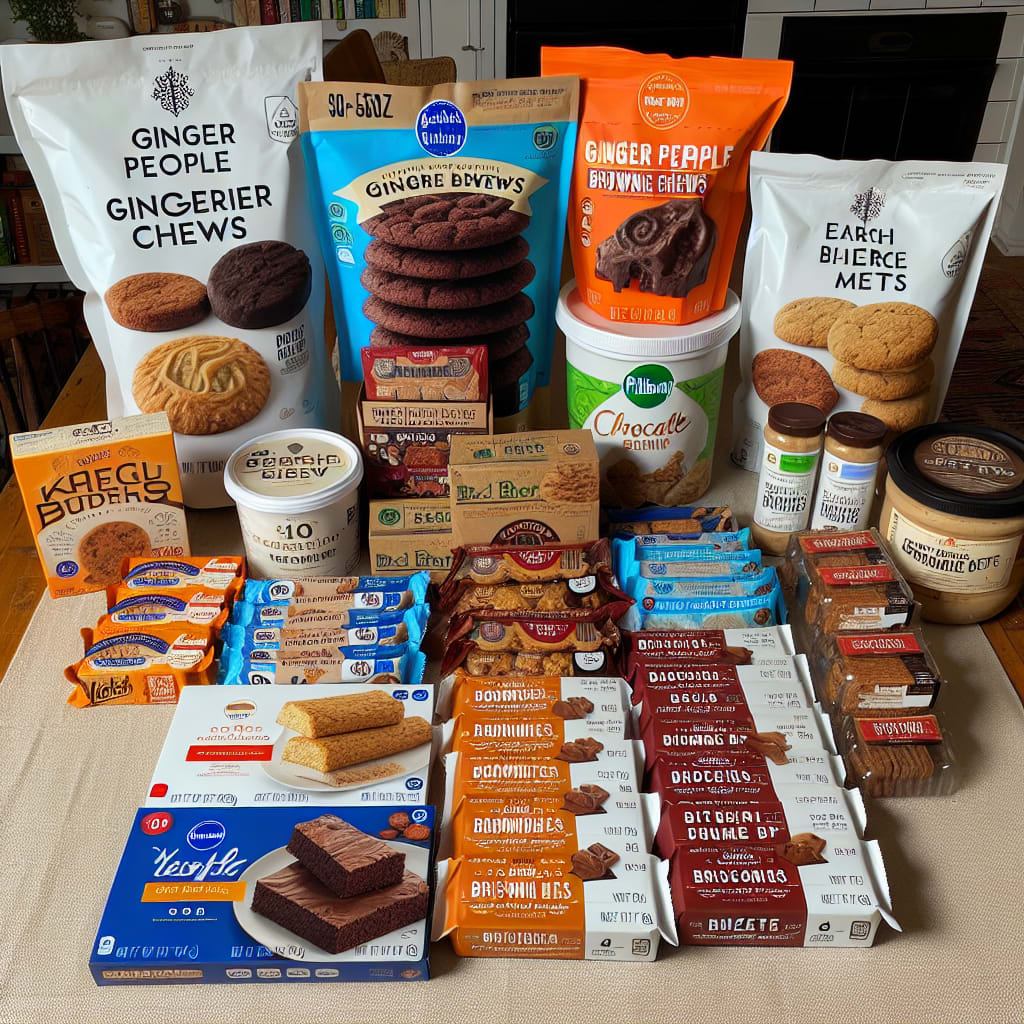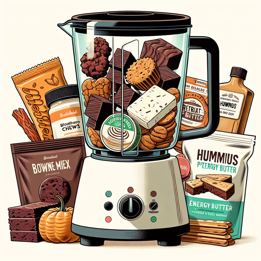/showme a blender full of Ginger People Ginger Chews, Earthside Brownie Bites, Birch Benders Brownie Mix, Birch Benders Chocolate Cake Mix, Pillsbury Cream Cheese Pastry Bag, Birch Benders Keto Vanilla Frosting, Nonni’s Pumpkin Biscotti, VERB Caffeinated Chocolate Peanut Butter Energy Bars, Mezete Classic Hummus, Mezete Red Pepper Hummus