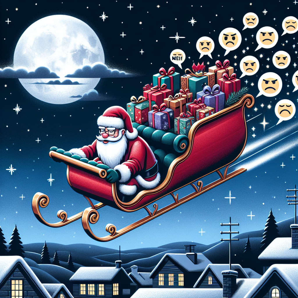 /showme Santa in a sleigh with meh themed presents