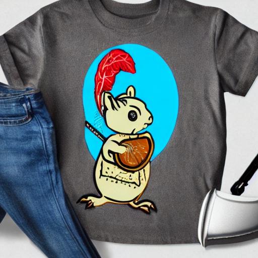 /showme squirrel dressed in Viking armor slaying an acorn as applied to a tee shirt in the style of Andy Warhol