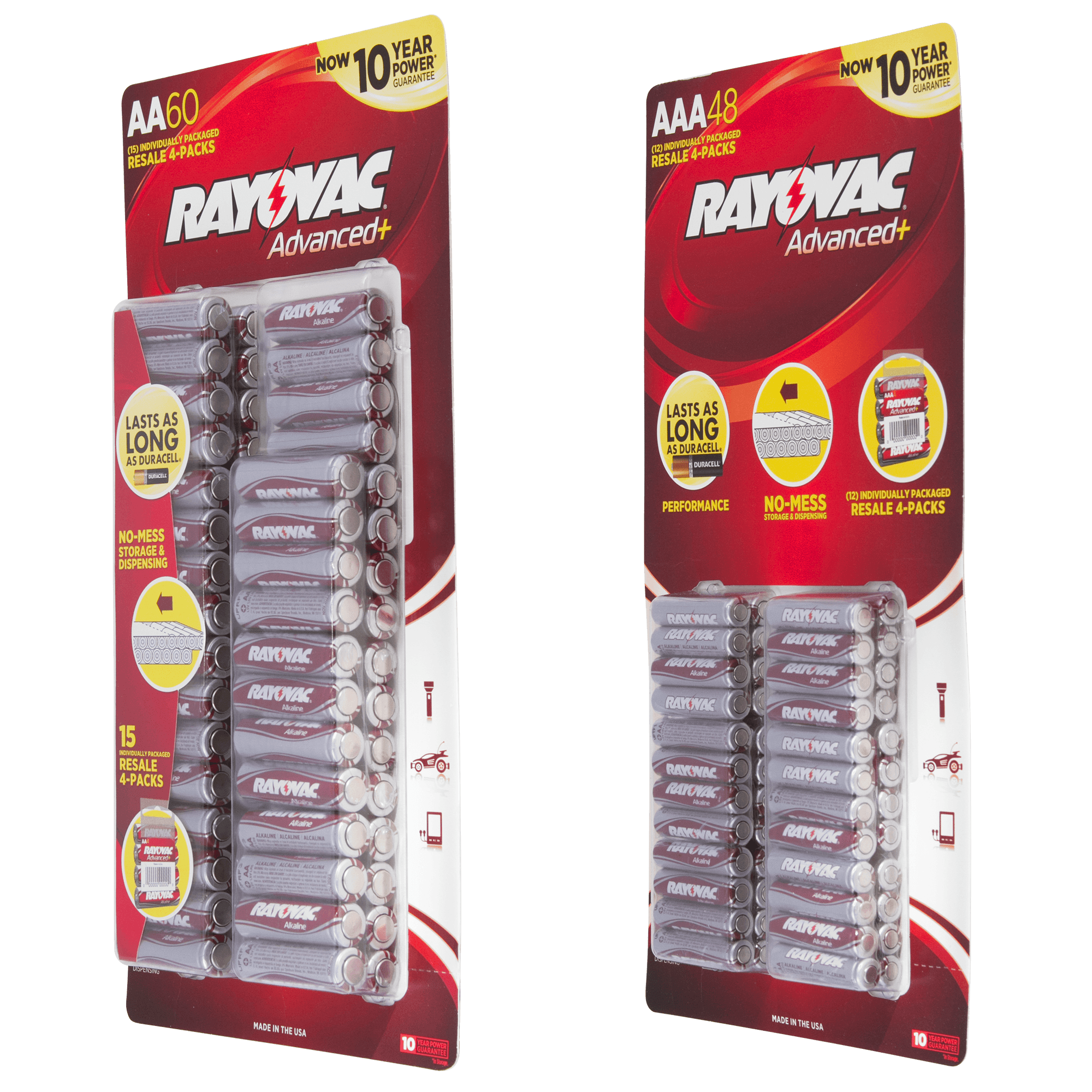 Specs====- Model # 824-48TSC (AAA 1.5v)- Model # 815-60TSC (AA 1.5v)- Rayovac Advanced+ Alkaline AA and AAA Batteries- Rayovac guarantees batteries hold power for up to 10 years in storage - These were packaged in September 2013 and batteries have a best if used by date of 2023- Made in USA- Batteries come shrink wrapped in resale 4-packs- Easy-store container designed for kitchen cabinet, pantry, and other storage spacesCondition - NewWarranty - Rayovac Money Back GuaranteeShips Via - FedEx SmartPost- $5 Shipping, Free with VMP Pictures====[AA][3][AAA][4][Both][5][War][2]Price Check====[This handy post by silalus over at Woot][1] gives some per battery comparisons. For reference, ours break down to:$0.13 per battery if youre a VMP for 1 packNot a VMP? It’s $0.23 per battery with shipping [1]: http://electronics.woot.com/forums/viewpost.aspx?postid=5829919[2]: https://d2b8wt72ktn9a2.cloudfront.net/mediocre/image/upload/v1406172864/atzl7awo8nd8idxmkzt9.png[3]: https://d2b8wt72ktn9a2.cloudfront.net/mediocre/image/upload/v1406172800/mlyqqosx2y7nte9sf8i8.png[4]: https://d2b8wt72ktn9a2.cloudfront.net/mediocre/image/upload/v1406172814/b090rnp9lgbgay9x0trh.png[5]:
