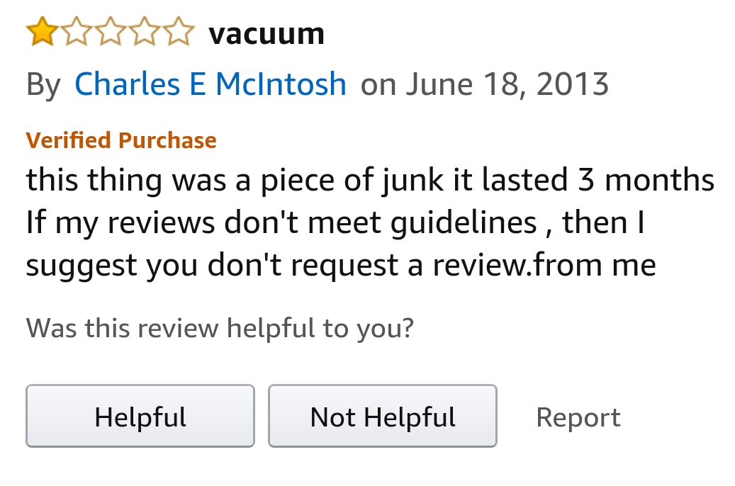 Oh, how I wish we could see the noncompliance version of the review. Mr. McIntosh clearly has a way with words.