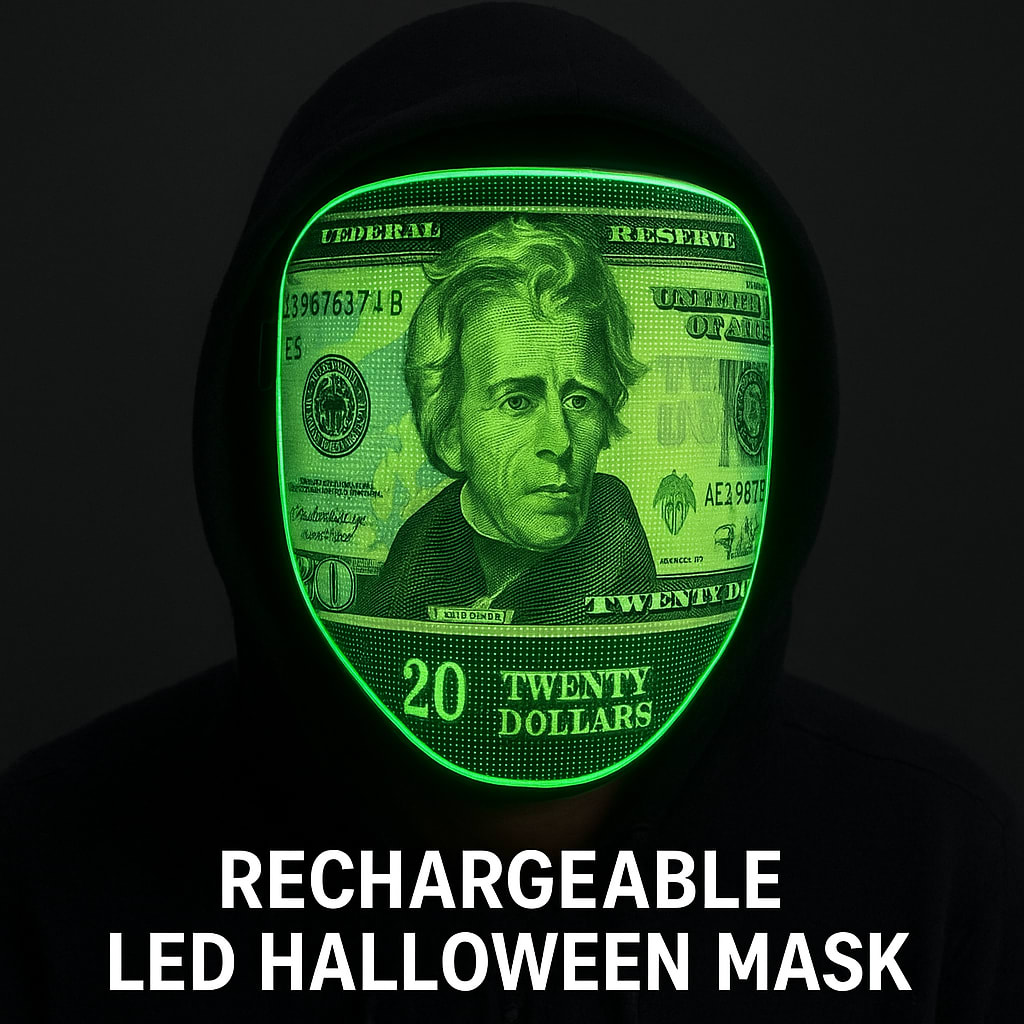 /showme Rechargeable LED Halloween Mask with image of 20 dollar bill on it.