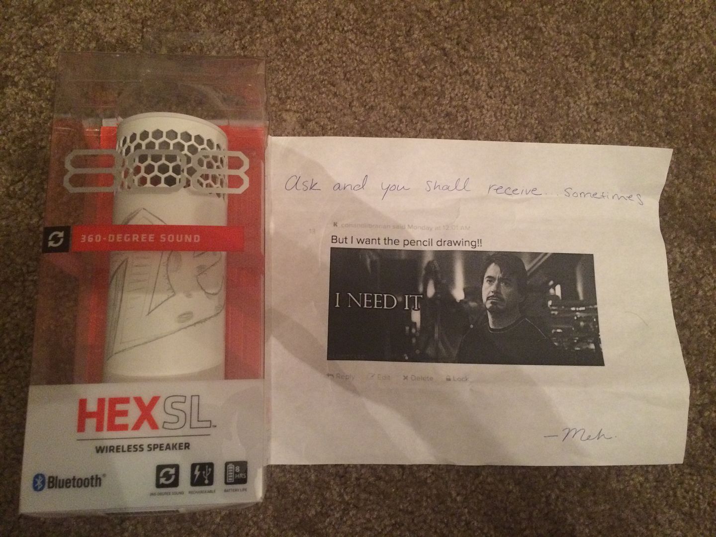 I was beyond excited when I opened the box. I mean, it is the actual one with the pencil drawng! I actually really wanted this speaker, but could not part with the money. Could this be Glen's way of telling me that he likes me? Is this Irk's way of saying that he is a fan on Cons and Librarians? Whatever it is, I am very thankful!!