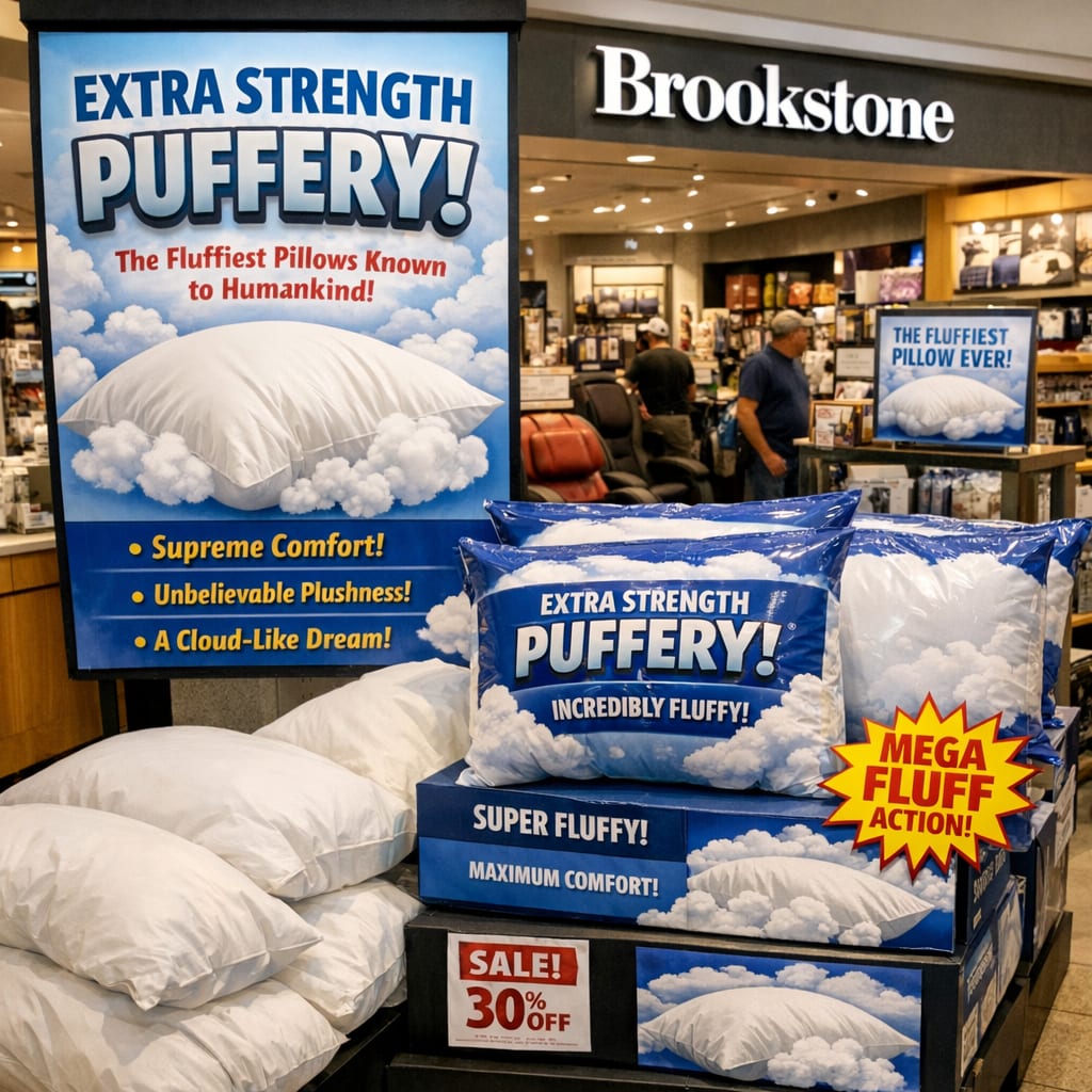 @heartny Here’s the image you requested for “extra strength puffery in a Brookstone store at the mall”