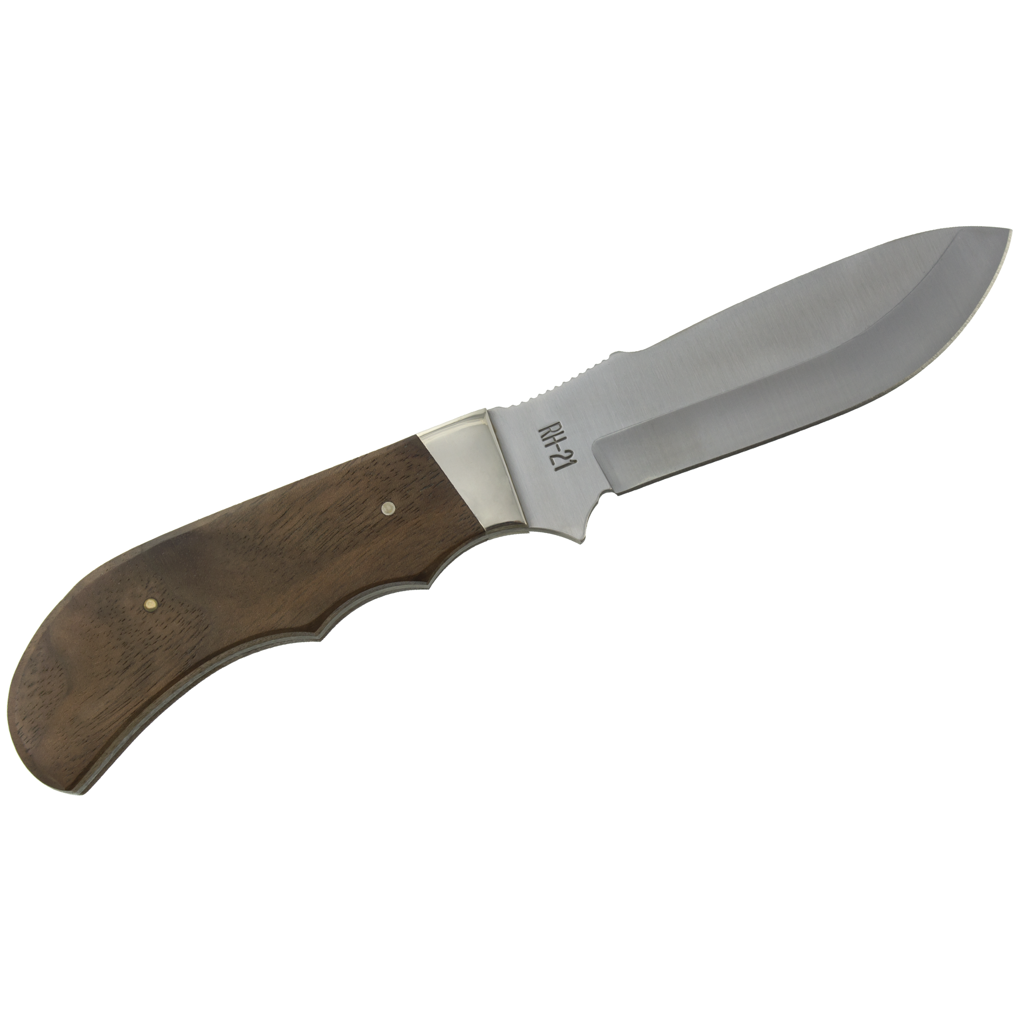 Specs ====- Model: R19981- Condition: New - Overall Length: 7.875"- Blade Length: 4"- Cutting Edge: 3.25"- Blade Thickness: 0.11"- Blade Material: 440A- Blade Style: Drop Point- Blade Grind: Hollow- Finish: Satin- Edge Type: Plain- Handle Length: 3.875"- Handle Thickness: 0.57"- Handle Material: Walnut- Bolster Material: Nickel Silver- Weight: 3.73 oz.- Sheath: LeatherWhat’s in the Box? ====1x KnifePictures====Stab this wayStab that wayWhoa this way againGonna cut yaGimme your walletOkay play it coolPlay it way more coolSTABBEDPrice Comparison====$65.98 at Amazon