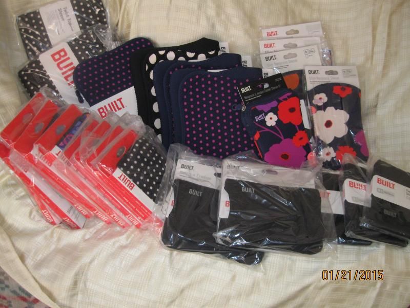 My shipment finally arrived today, 2 days late due to Snowmaggeden. I only received 29 sleeves, even though I ordered 30. Was hoping for a 13" slim laptop sleeve, but I guess that wasn't in the cards. Unless of course that was the one I didn't get? Here's my haul: