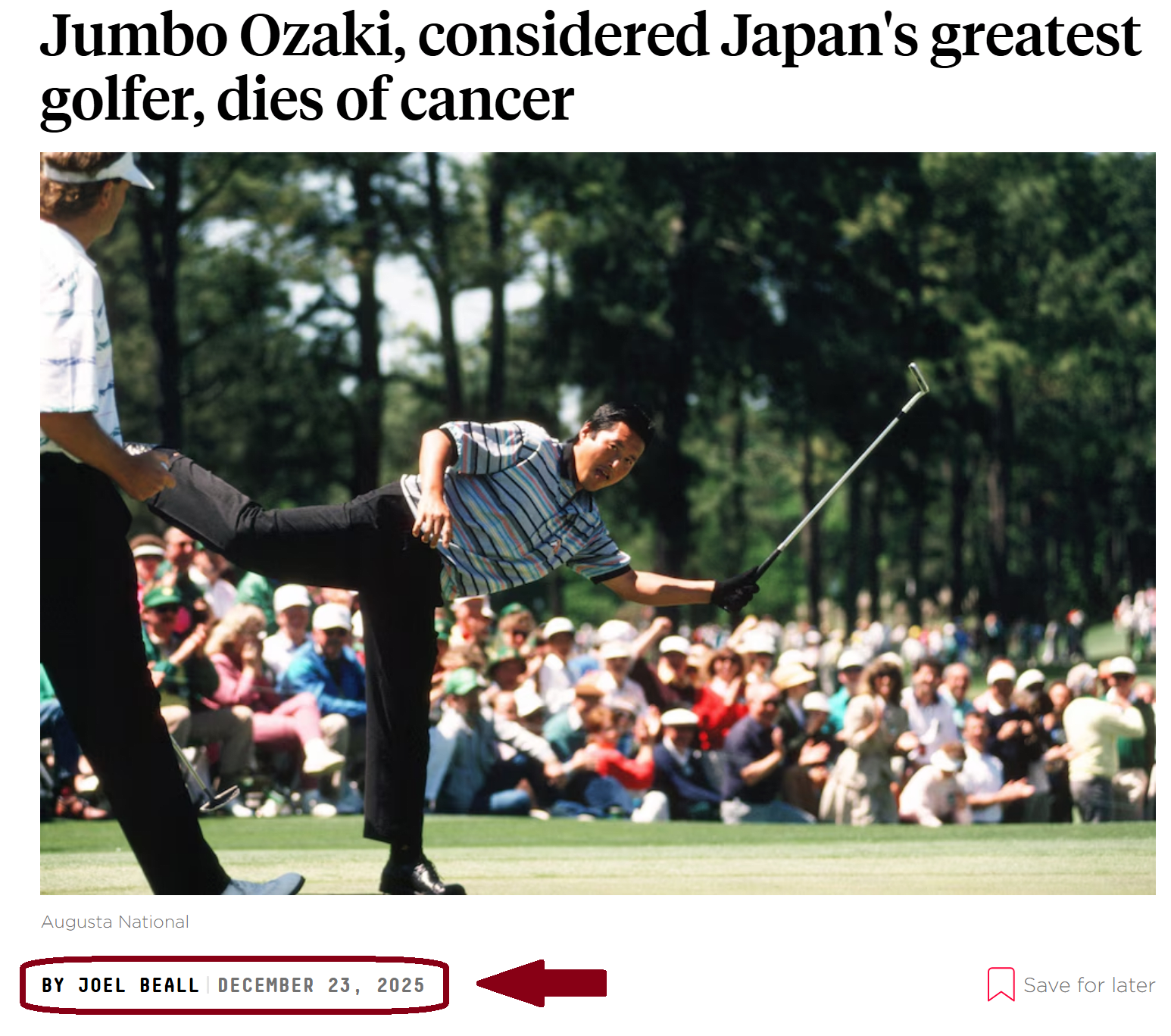 "Masashi Ozaki, widely considered Japanese’s greatest golfer, has died from cancer. He was 78.