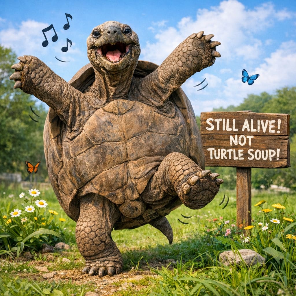 /showme a 193-year-old Seychelles giant tortoise named Jonathan dancing for joy since he’s still alive and hasn’t been made into Turtle Soup as some had feared.