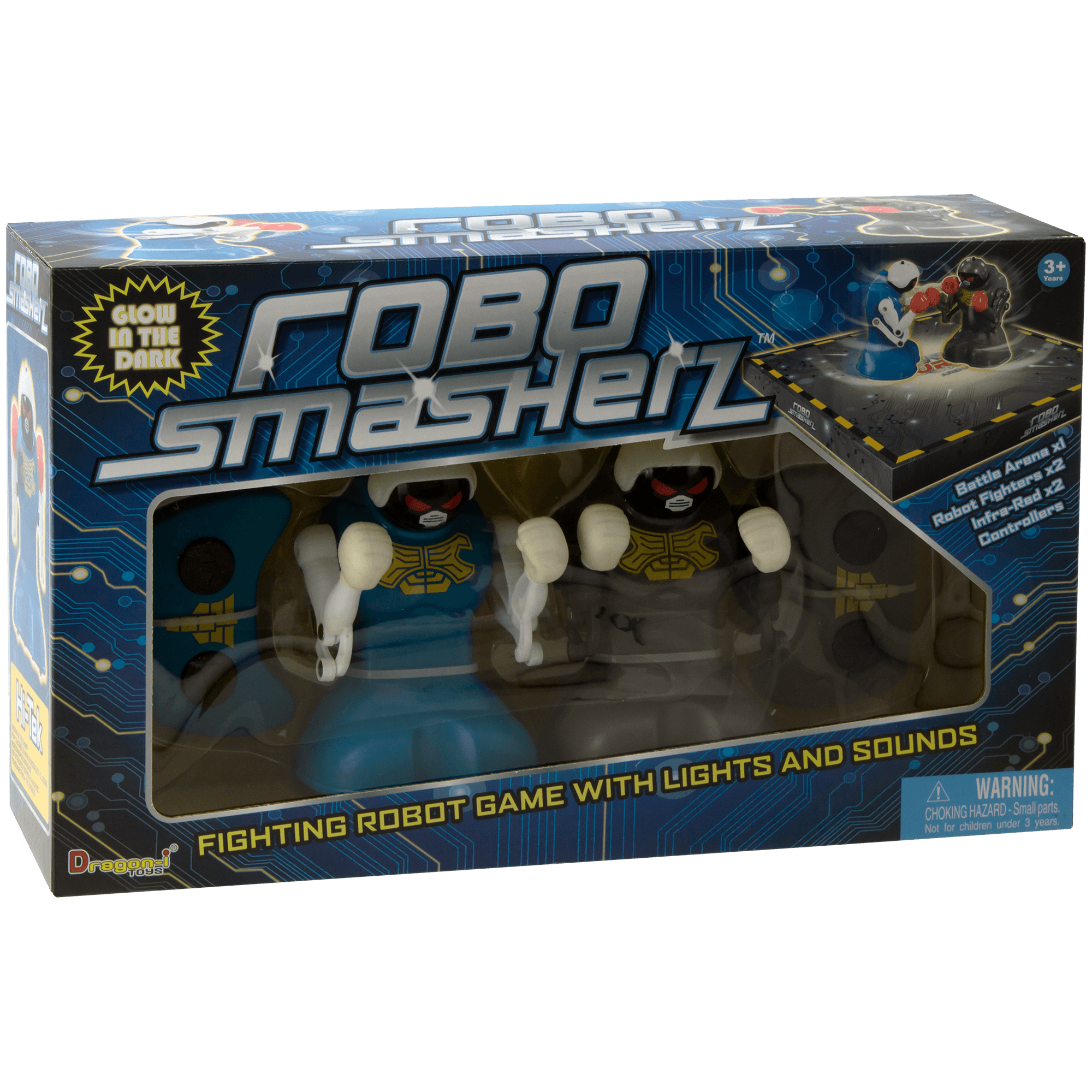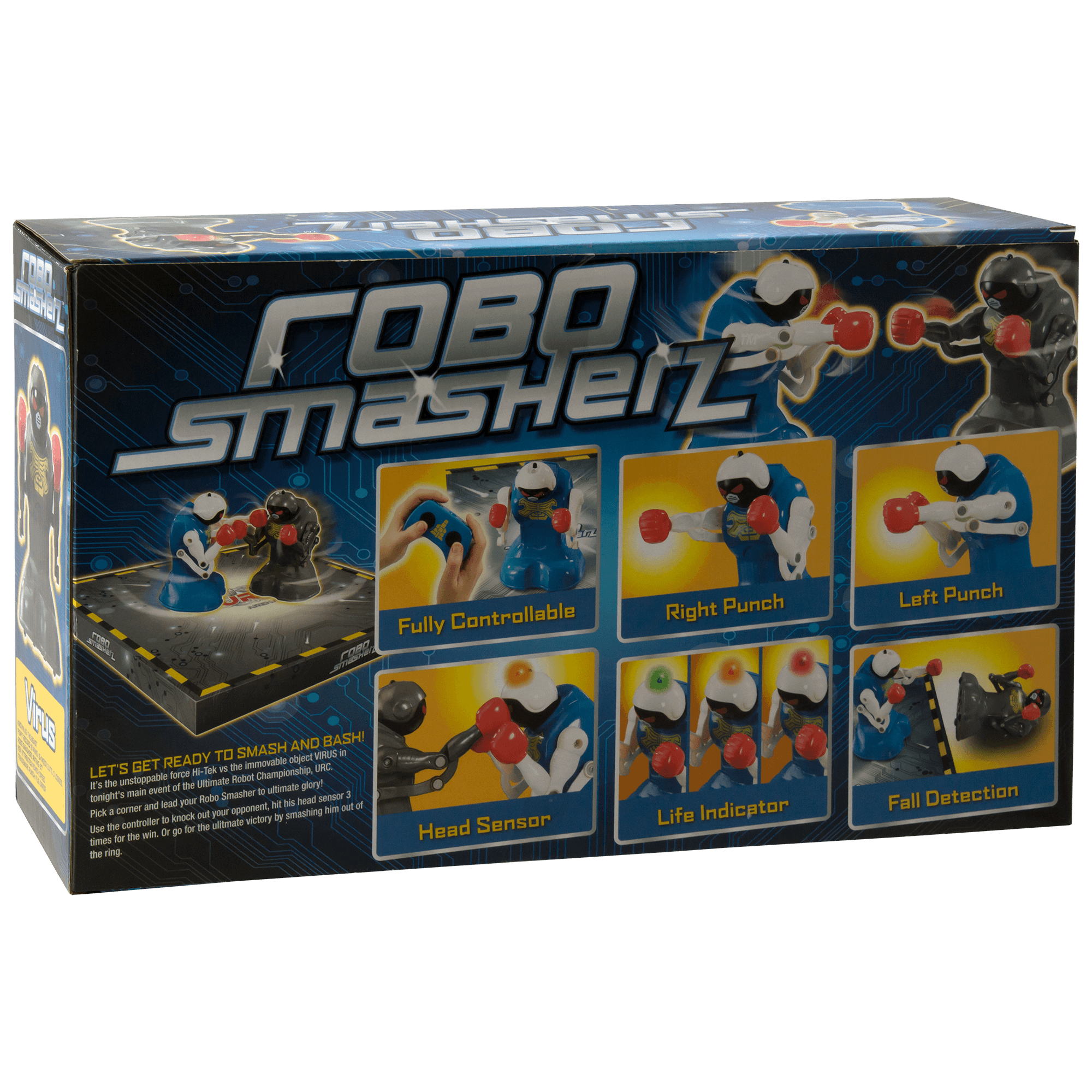 Specs ====- Model: 87274, 80544H, MM2015D, or D80544H011- Condition: New- IR Controller- Sound effects and LED light to indicate health- Three punches in the head for a knockout- Power: 10x AAA batteries (3x in each robot, 2x in each controller)- Cut apart the box for a fighting ringWhat’s in the Box? ====2x Robots2x Controllers1x Cardboard fighting ringPictures====Heads do not actually explodeBox frontBox backTaking cornersPunch punch punchThe smasherzPrice Comparison====$25.95 at AmazonFind a relevant price comparison? Please share it in a comment in this thread