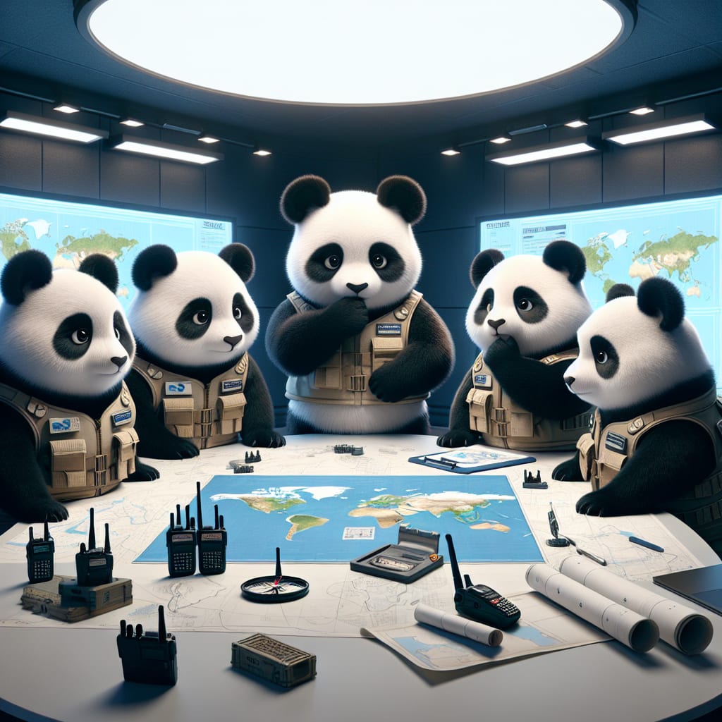 /showme Pandas in a situation room planning total world conquest and the subjugation of humanity.