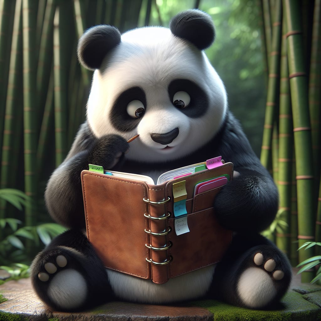/showme A panda with a planner