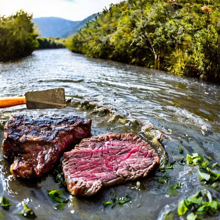 /showme steak in a river