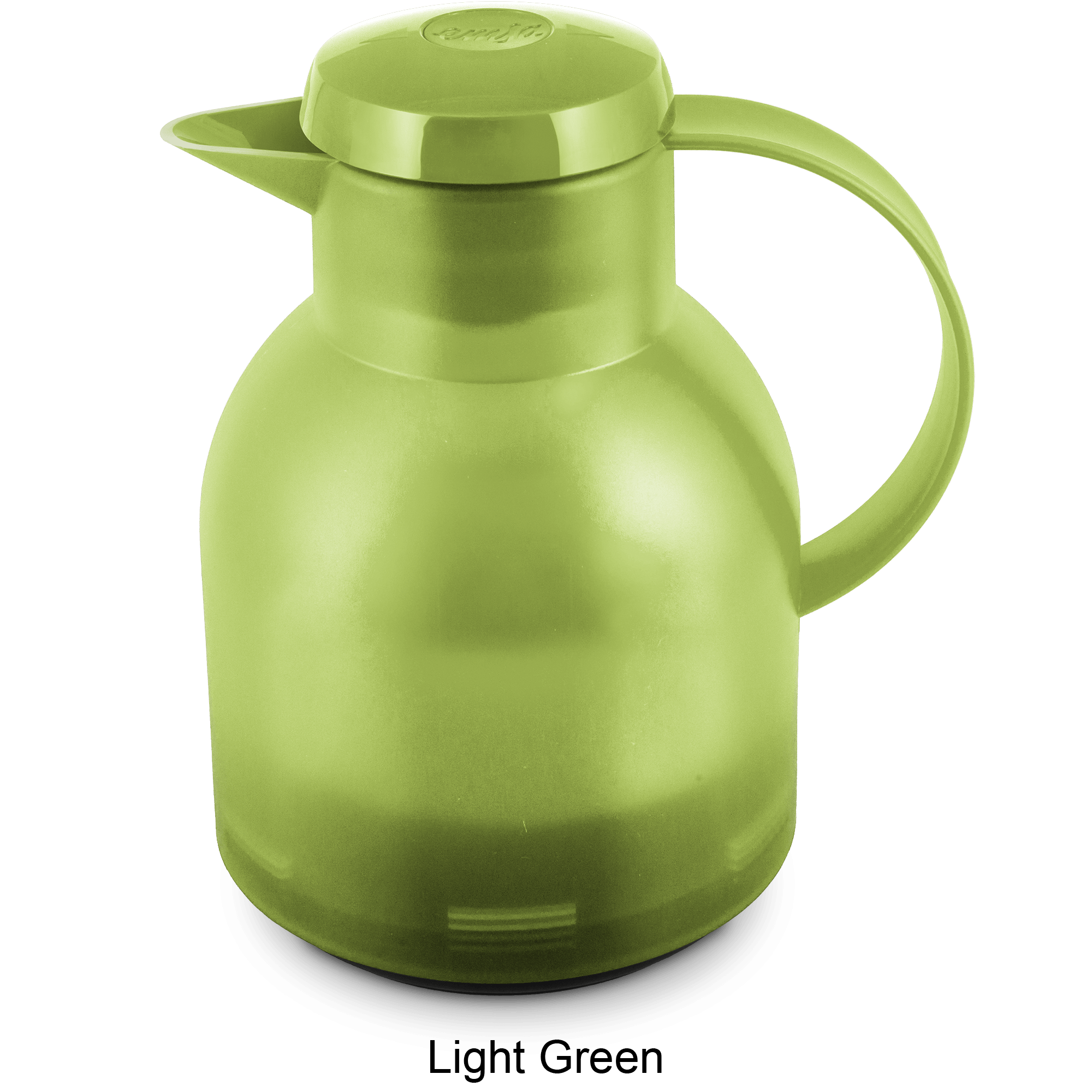 Specs ====- Model: E504235- Capacity: 34 fl. oz (1 liter)- BPA free- High impact plastic exterior with glass vacuum sealed liner- Bottom screws off to clean glass liner- 100% Leak proof- Opens with button on lid- Heat and cold retention up to 16 hours- Dimensions: 8.5" x 6.5" (Height x Diameter) Condition: New Warranty: 90 day Mediocre Estimated Delivery: 5/18 - 5/20Shipping: $5 or free with VMP What’s in the Box? ====1x Samba Carafe1x LidPictures====Holding redBlown-glass innardsLooking insideLidPush the buttonRedEggplantWhiteBlueRaspberryOrangeLight GreenBlackYellowLavenderPrice Comparison ====$25 List, $24.31 - $24.95 at Amazon (228 reviews, sold by Amazon)- “This is awesome, but I need one that holds a 12 cup pot of coffee. I think except for size it does everything I expected it to.” - Amazon customer- “This thermos is better than it looks in the photo. The plastic is lightweight but sturdy, and shaped so it is impossible to tip it over. The way the light goes through the plastic makes it really cute, so I don’t mind leaving it on the counter. (I wondered if it would be too red for my yellow kitchen). The lid goes on easily and to pour, you only push a button on the lid with no need for unwinding. As long as you keep it clean, you won’t have to scrub; but you may want a bottle brush as your hand with a rag won’t fit inside. The liner appears to be a heavy-duty glass, so you won’t want to drop it, but it should be sturdy in case you accidentally do. The handle will accomodate even a large hand. My coffee is still piping hot the next day. Great thermos!” - Amazon customer- “The shape is very odd and you feel like nothing is coming out. You then get the feeling you need to loosen the top and the fluid all dumps out!” - Gross Amazon customerFind a relevant price comparison? Please share it in a comment in this thread