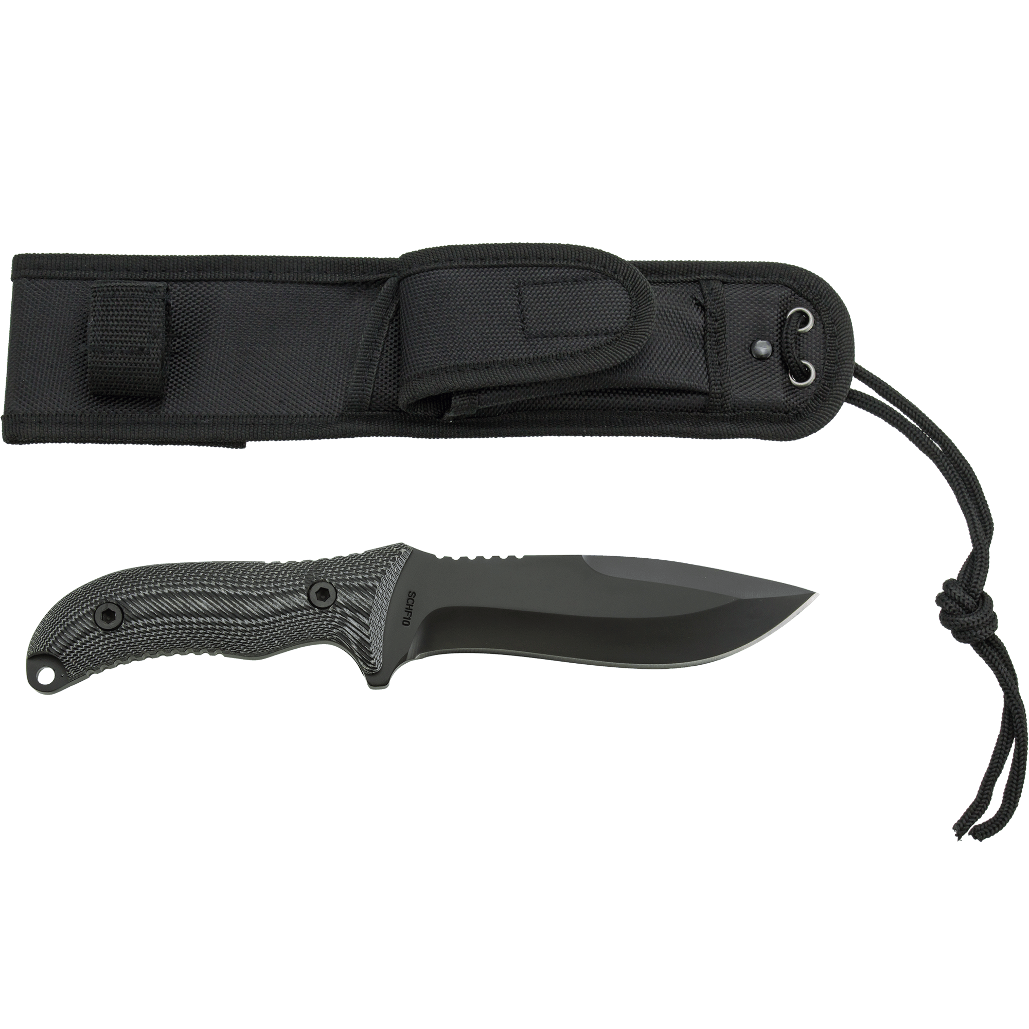 Specs ====- Model: SCHF10- Overall Length: 10.50"- Blade Length: 5.375"- Blade Thickness: 0.24"- Blade Material: 8Cr13MoV- Blade Style: Drop Point- Blade Grind: Hollow- Finish: Black- Handle Length: 5.125"- Handle Thickness: 0.78"- Handle Material: Micarta- Weight: 13.50 oz.- Sheath Material: NylonCondition: NewWarranty: Lifetime SchradeEstimated Delivery: 7/21 - 7/25Shipping: $5 or free with VMP What’s in the Box? ====1x Knife1x SheathPictures====Stabbin’SheathKnife out of sheathOne sideOther sideBack viewPrice Comparison ====$34.99 at Amazon (263 reviews$66.95 List (23 reviews)Find a relevant price comparison? Please share it in a comment in this thread
